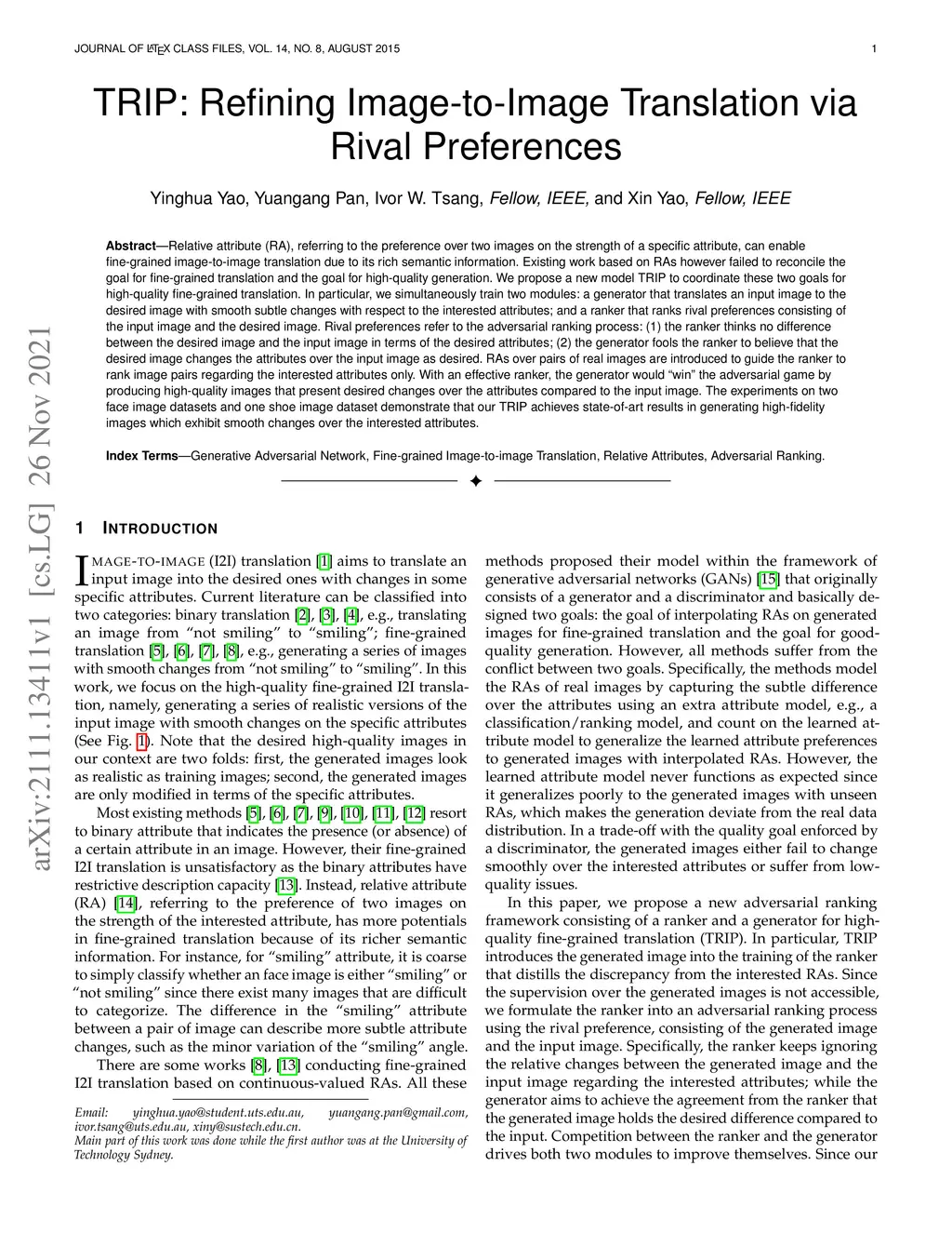 TRIP: Refining Image-to-Image Translation via Rival Preferences