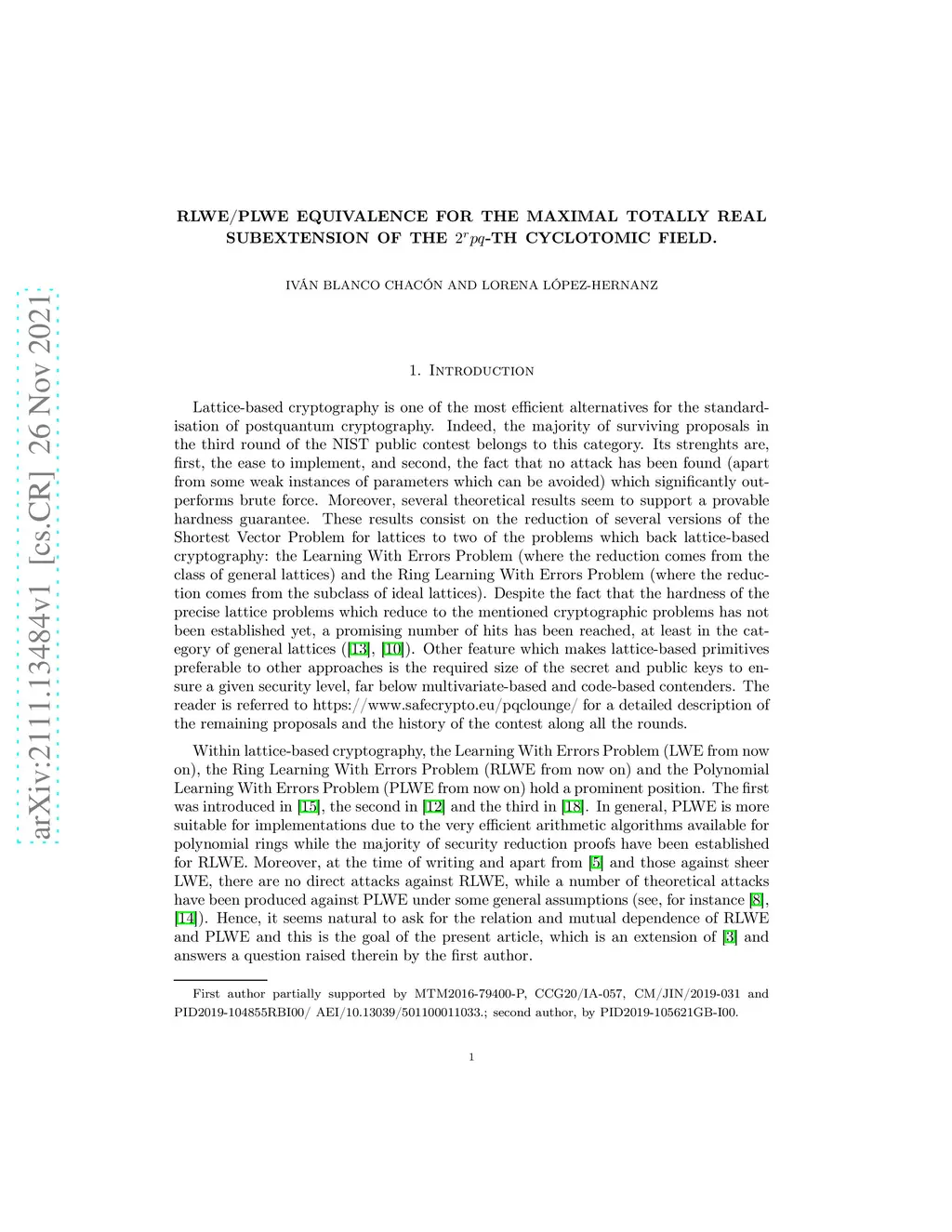 We prove the RLWE/PLWE equivalence for the maximal totally real subextension of the -th cyclotomic field and discuss some of its applications to cryptoanalysis.