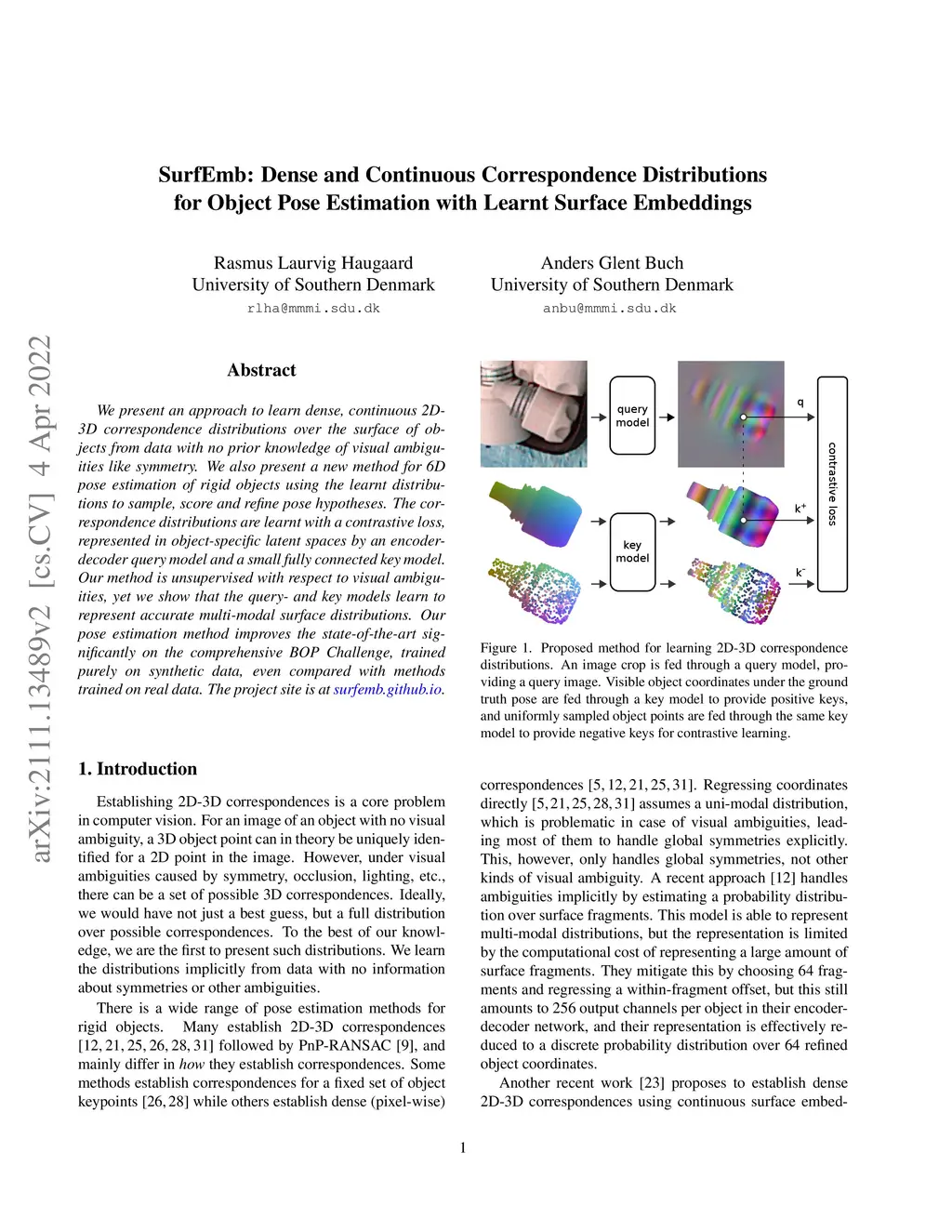 SurfEmb: Dense and Continuous Correspondence Distributions for Object