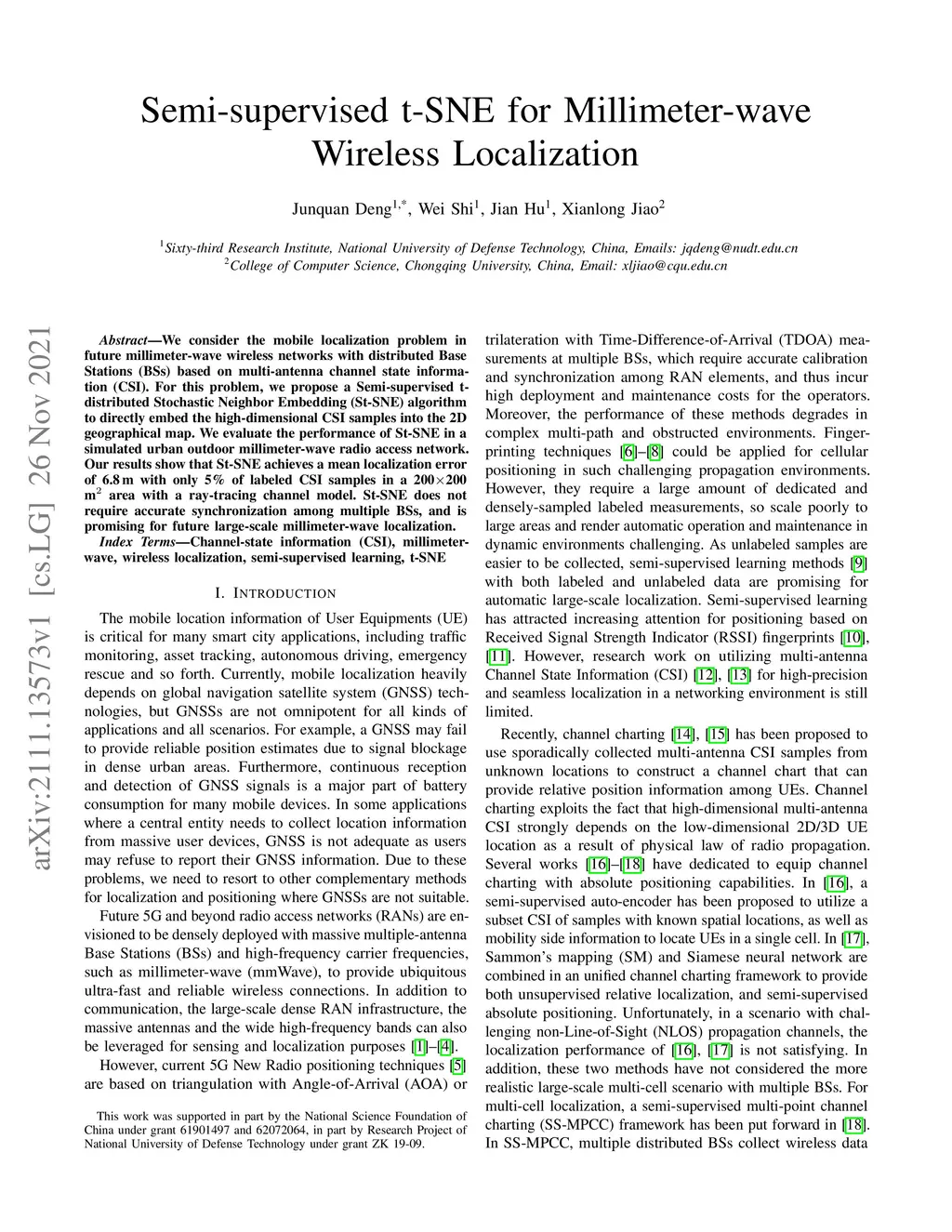 Semi-supervised t-SNE for Millimeter-wave Wireless Localization