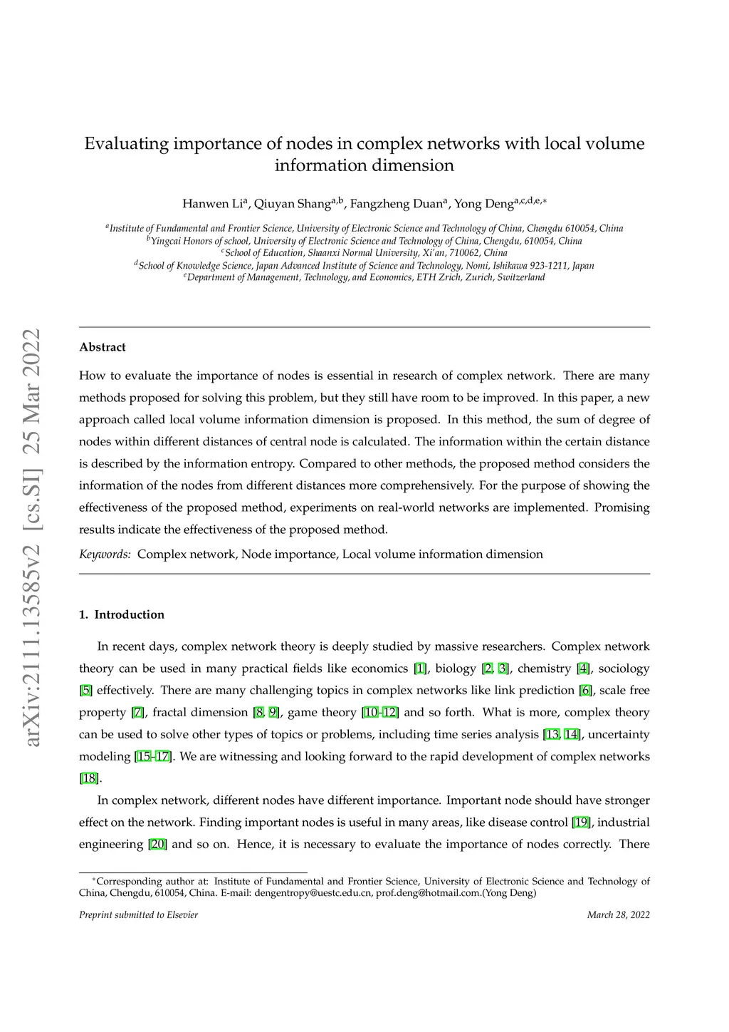 How to evaluate the importance of nodes is essential in research of complex network. There are many methods proposed for solving this problem, but they still have room to be improved. In this paper, a new approach called local volume information dimension is proposed. In this method, the sum of degree of nodes within different distances of central node is calculated. The information within the certain distance is described by the information entropy. Compared to other methods, the proposed method considers the information of the nodes from different distances more comprehensively. For the purpose of showing the effectiveness of the proposed method, experiments on real-world networks are implemented. Promising results indicate the effectiveness of the proposed method.