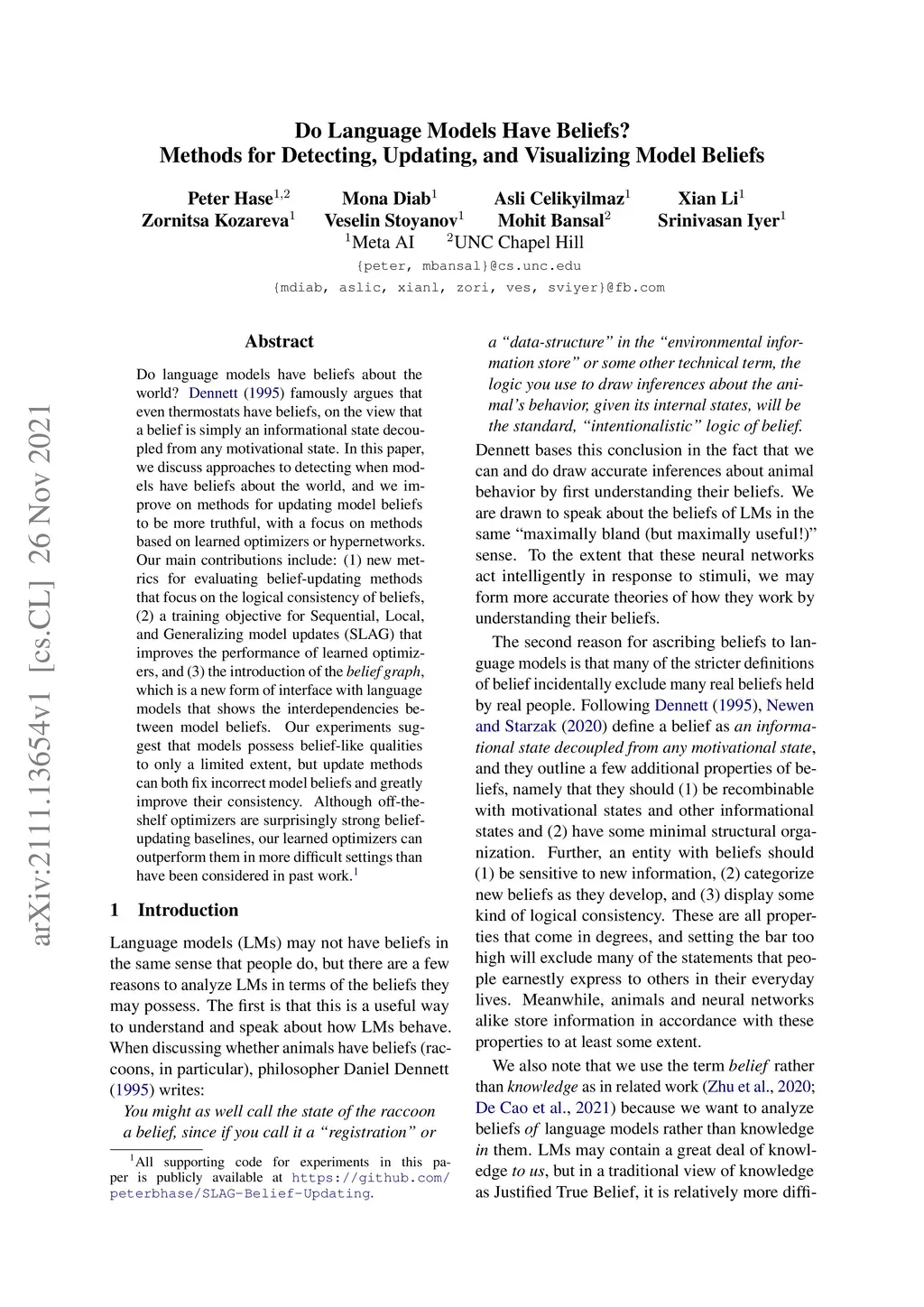 Do Language Models Have Beliefs? Methods for Detecting, Updating, and