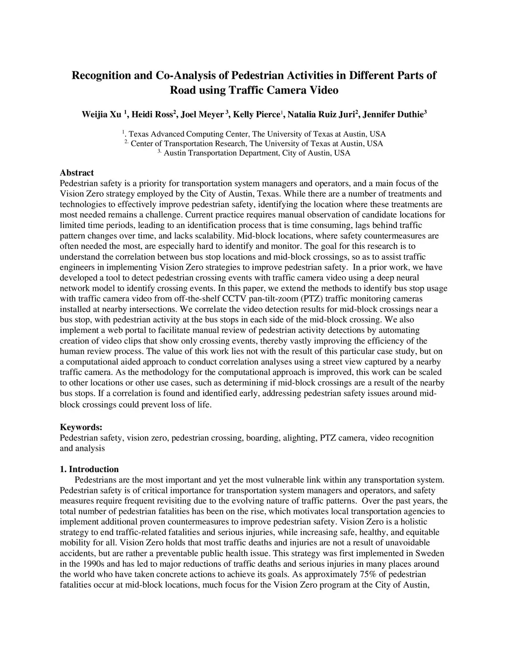Pedestrian safety is a priority for transportation system managers and operators, and a main focus of the Vision Zero strategy employed by the City of Austin, Texas. While there are a number of treatments and technologies to effectively improve pedestrian safety, identifying the location where these treatments are most needed remains a challenge. Current practice requires manual observation of candidate locations for limited time periods, leading to an identification process that is time consuming, lags behind traffic pattern changes over time, and lacks scalability. Mid-block locations, where safety countermeasures are often needed the most, are especially hard to identify and monitor. The goal for this research is to understand the correlation between bus stop locations and mid-block crossings, so as to assist traffic engineers in implementing Vision Zero strategies to improve pedestrian safety. In a prior work, we have developed a tool to detect pedestrian crossing events with traffic camera video using a deep neural network model to identify crossing events. In this paper, we extend the methods to identify bus stop usage with traffic camera video from off-the-shelf CCTV pan-tilt-zoom (PTZ) traffic monitoring cameras installed at nearby intersections. We correlate the video detection results for mid-block crossings near a bus stop, with pedestrian activity at the bus stops in each side of the mid-block crossing. We also implement a web portal to facilitate manual review of pedestrian activity detections by automating creation of video clips that show only crossing events, thereby vastly improving the efficiency of the human review process.