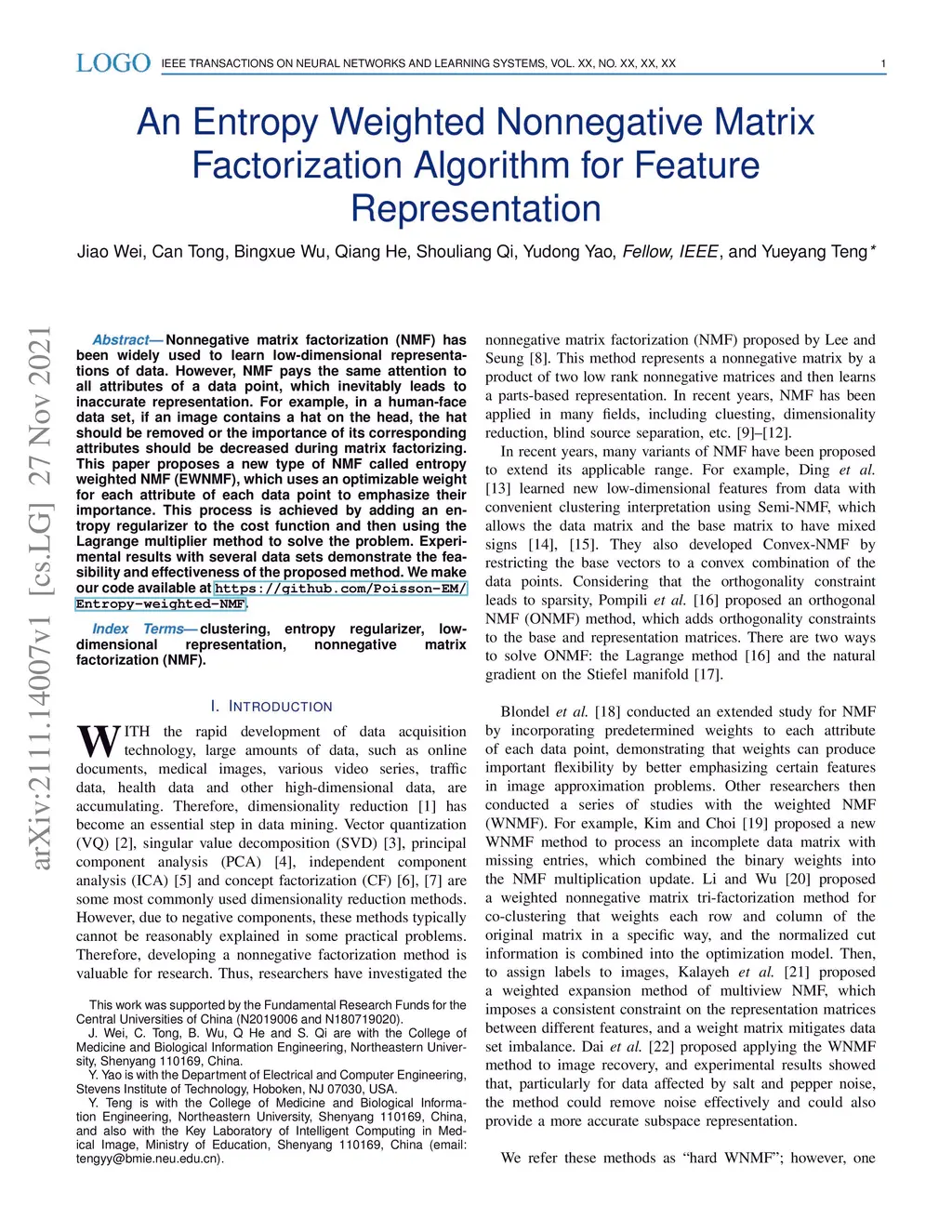 An Entropy Weighted Nonnegative Matrix Factorization Algorithm for