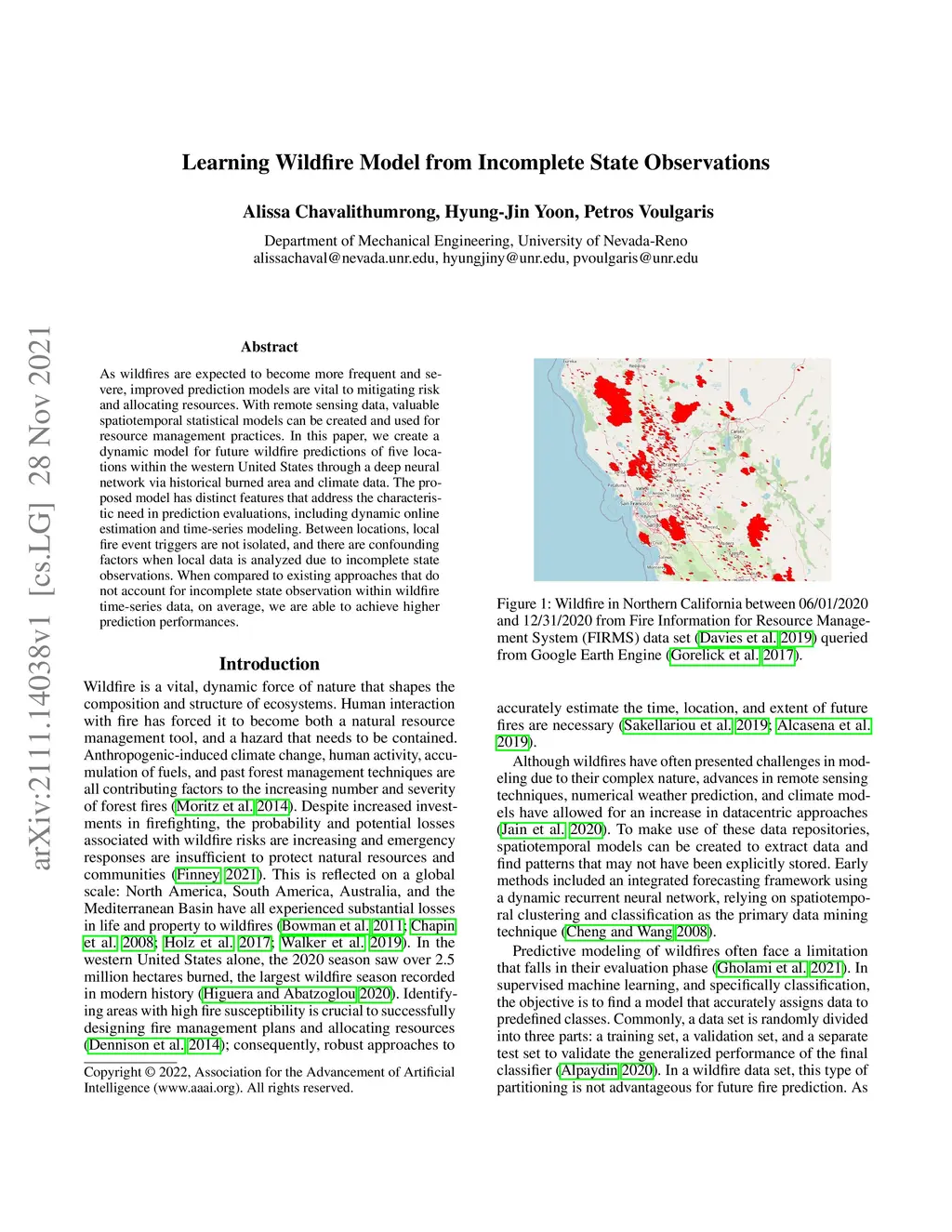 As wildfires are expected to become more frequent and severe, improved prediction models are vital to mitigating risk and allocating resources. With remote sensing data, valuable spatiotemporal statistical models can be created and used for resource management practices. In this paper, we create a dynamic model for future wildfire predictions of five locations within the western United States through a deep neural network via historical burned area and climate data. The proposed model has distinct features that address the characteristic need in prediction evaluations, including dynamic online estimation and time-series modeling. Between locations, local fire event triggers are not isolated, and there are confounding factors when local data is analyzed due to incomplete state observations. When compared to existing approaches that do not account for incomplete state observation within wildfire time-series data, on average, we are able to achieve higher prediction performances.
