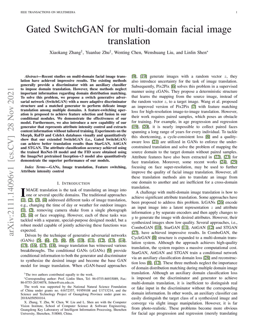 Gated SwitchGAN for multi-domain facial image translation