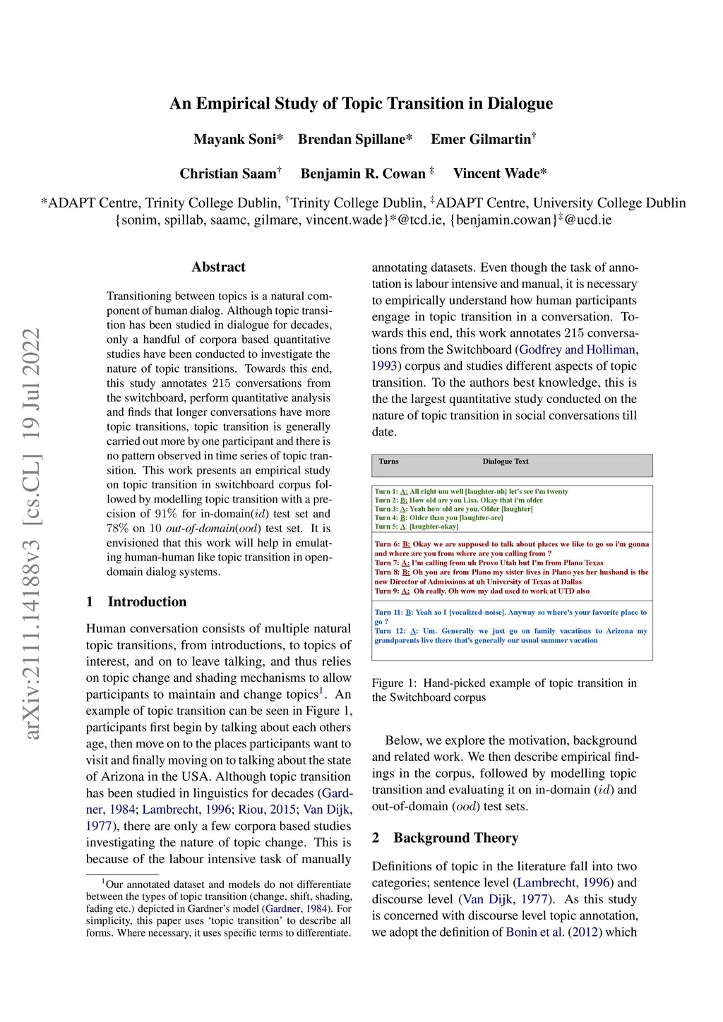 An Empirical Study of Topic Transition in Dialogue