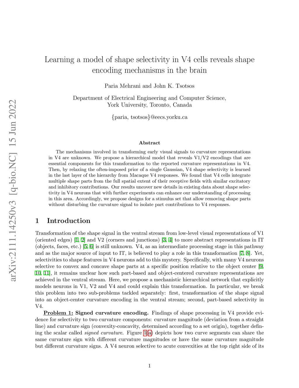 The mechanisms involved in transforming early visual signals to curvature representations in V4 are unknown. We propose a hierarchical model that reveals V1/V2 encodings that are essential components for this transformation to the reported curvature representations in V4. Then, by relaxing the often-imposed prior of a single Gaussian, V4 shape selectivity is learned in the last layer of the hierarchy from Macaque V4 responses. We found that V4 cells integrate multiple shape parts from the full spatial extent of their receptive fields with similar excitatory and inhibitory contributions. Our results uncover new details in existing data about shape selectivity in V4 neurons that with further experiments can enhance our understanding of processing in this area. Accordingly, we propose designs for a stimulus set that allow removing shape parts without disturbing the curvature signal to isolate part contributions to V4 responses.