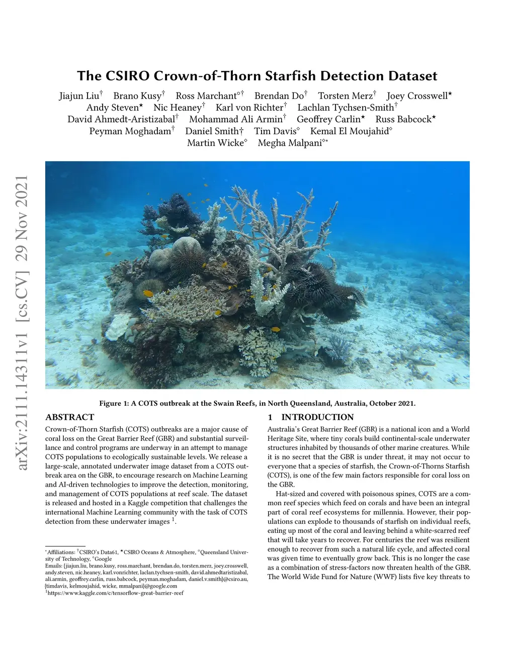 The CSIRO Crown-of-Thorn Starfish Detection Dataset