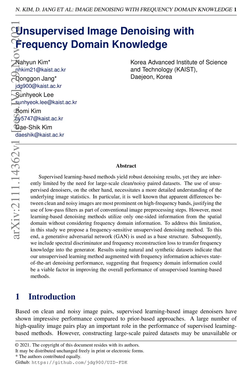 Unsupervised Image Denoising with Frequency Domain Knowledge