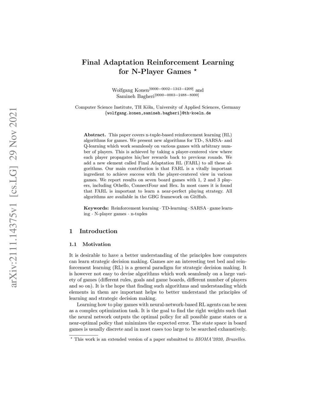 Final Adaptation Reinforcement Learning for N-Player Games