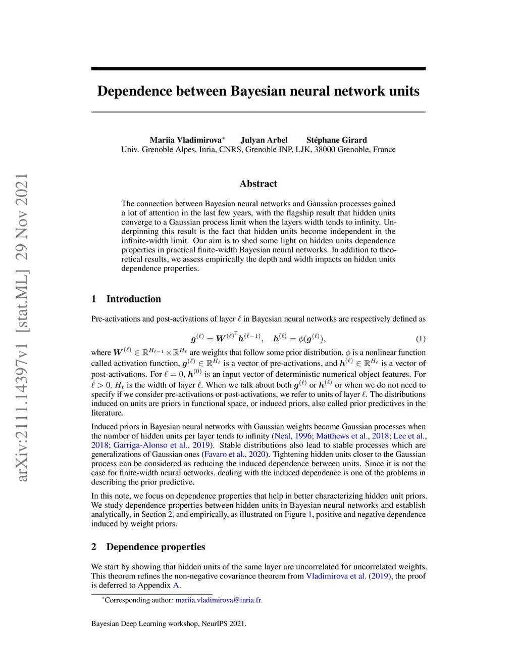 The connection between Bayesian neural networks and Gaussian processes gained a lot of attention in the last few years, with the flagship result that hidden units converge to a Gaussian process limit when the layers width tends to infinity. Underpinning this result is the fact that hidden units become independent in the infinite-width limit. Our aim is to shed some light on hidden units dependence properties in practical finite-width Bayesian neural networks. In addition to theoretical results, we assess empirically the depth and width impacts on hidden units dependence properties.