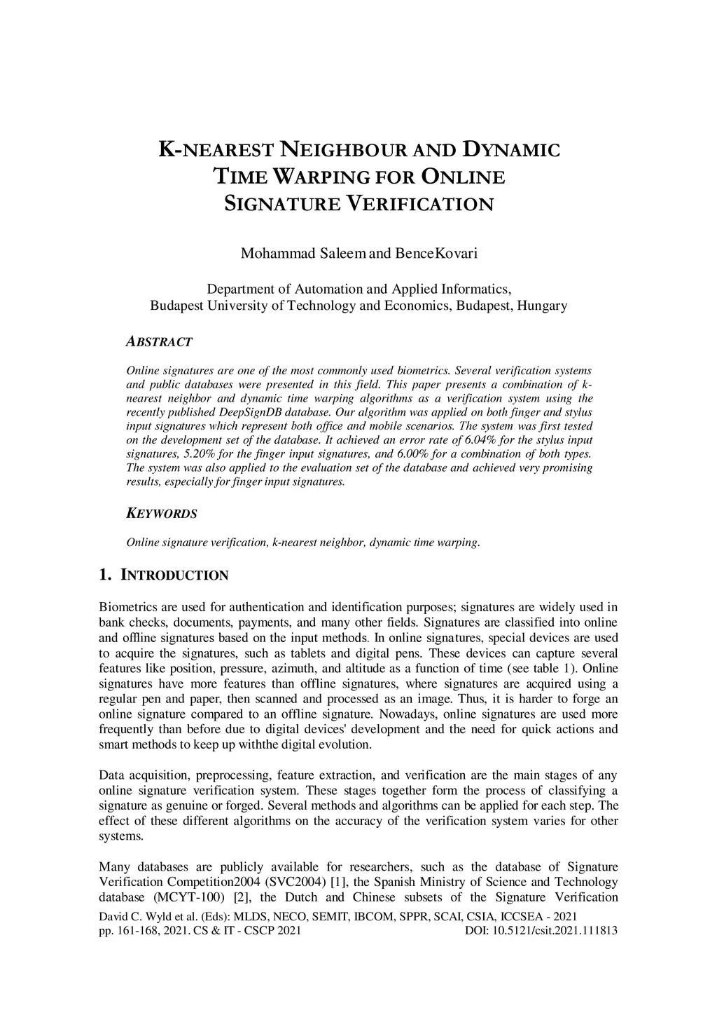 K-nearest neighbour and dynamic time warping for online signature