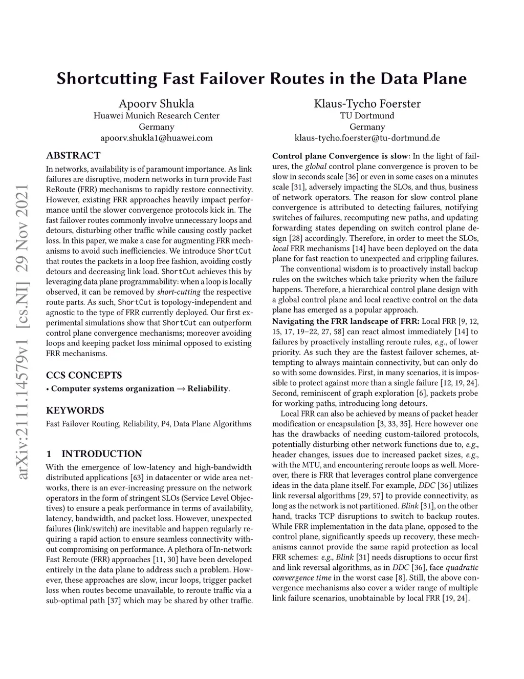 In networks, availability is of paramount importance. As link failures are disruptive, modern networks in turn provide Fast ReRoute (FRR) mechanisms to rapidly restore connectivity. However, existing FRR approaches heavily impact performance until the slower convergence protocols kick in. The fast failover routes commonly involve unnecessary loops and detours, disturbing other traffic while causing costly packet loss. In this paper, we make a case for augmenting FRR mechanisms to avoid such inefficiencies. We introduce ShortCut that routes the packets in a loop free fashion, avoiding costly detours and decreasing link load. ShortCut achieves this by leveraging data plane programmability: when a loop is locally observed, it can be removed by short-cutting the respective route parts. As such, ShortCut is topology-independent and agnostic to the type of FRR currently deployed. Our first experimental simulations show that ShortCut can outperform control plane convergence mechanisms; moreover avoiding loops and keeping packet loss minimal opposed to existing FRR mechanisms.