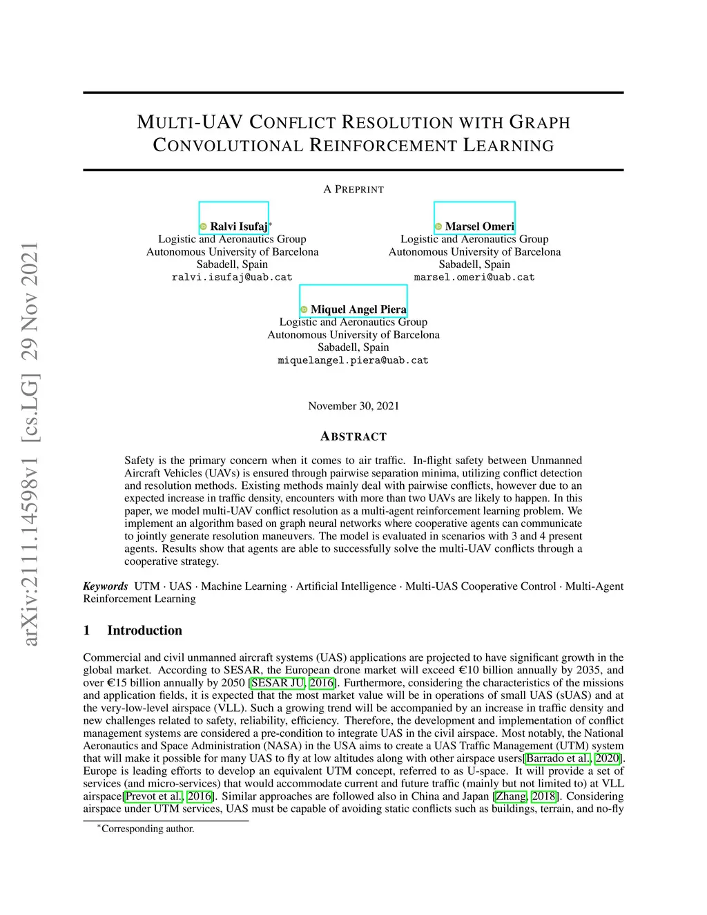 Multi-UAV Conflict Resolution with Graph Convolutional Reinforcement
