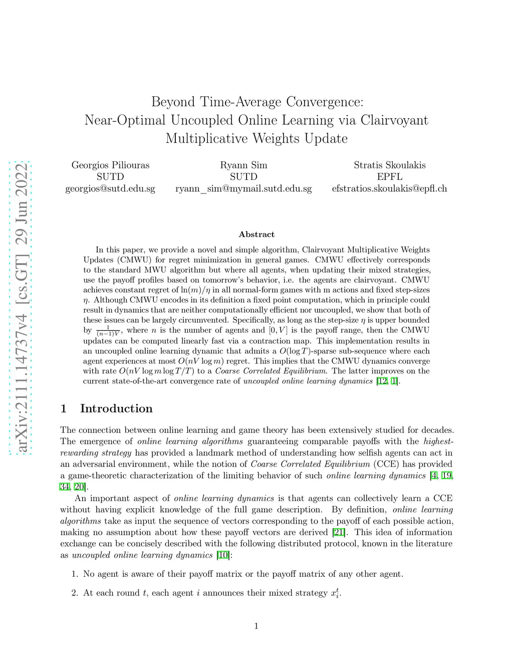 via Clairvoyant Multiplicative Weights Update