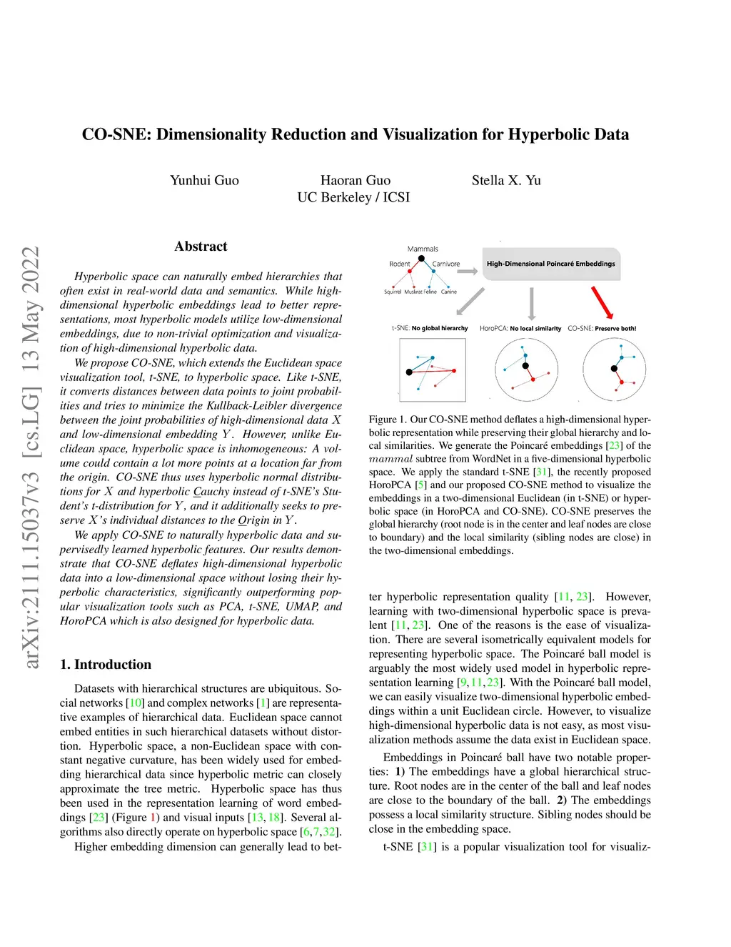 CO-SNE: Dimensionality Reduction and Visualization for Hyperbolic Data