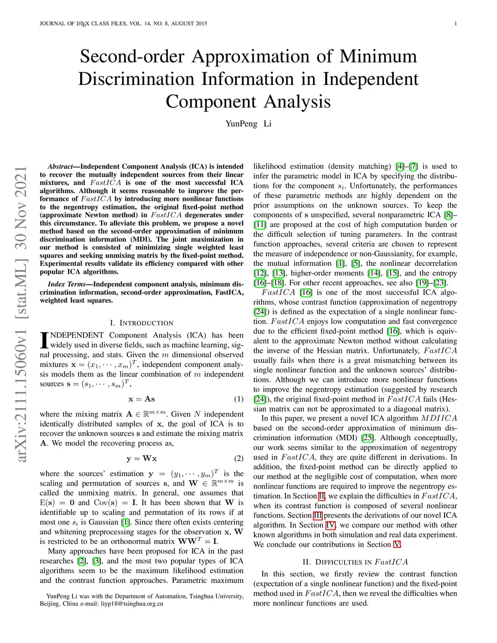 Independent Component Analysis (ICA) is intended to recover the mutually independent sources from their linear mixtures, and F astICA is one of the most successful ICA algorithms. Although it seems reasonable to improve the performance of F astICA by introducing more nonlinear functions to the negentropy estimation, the original fixed-point method (approximate Newton method) in F astICA degenerates under this circumstance. To alleviate this problem, we propose a novel method based on the second-order approximation of minimum discrimination information (MDI). The joint maximization in our method is consisted of minimizing single weighted least squares and seeking unmixing matrix by the fixed-point method. Experimental results validate its efficiency compared with other popular ICA algorithms.