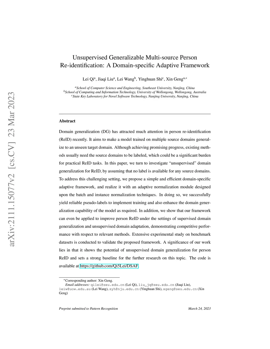 Domain generalization (DG) has attracted much attention in person re-identification (ReID) recently. It aims to make a model trained on multiple source domains generalize to an unseen target domain. Although achieving promising progress, existing methods usually need the source domains to be labeled, which could be a significant burden for practical ReID tasks. In this paper, we turn to investigate unsupervised domain generalization for ReID, by assuming that no label is available for any source domains. To address this challenging setting, we propose a simple and efficient domain-specific adaptive framework, and realize it with an adaptive normalization module designed upon the batch and instance normalization techniques. In doing so, we successfully yield reliable pseudo-labels to implement training and also enhance the domain generalization capability of the model as required. In addition, we show that our framework can even be applied to improve person ReID under the settings of supervised domain generalization and unsupervised domain adaptation, demonstrating competitive performance with respect to relevant methods. Extensive experimental study on benchmark datasets is conducted to validate the proposed framework. A significance of our work lies in that it shows the potential of unsupervised domain generalization for person ReID and sets a strong baseline for the further research on this topic.