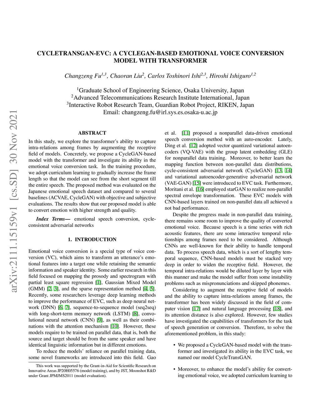 CycleTransGAN-EVC: A CycleGAN-based Emotional Voice Conversion Model