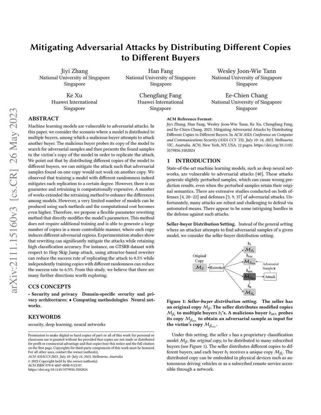 Mitigating Adversarial Attacks by Distributing Different Copies to