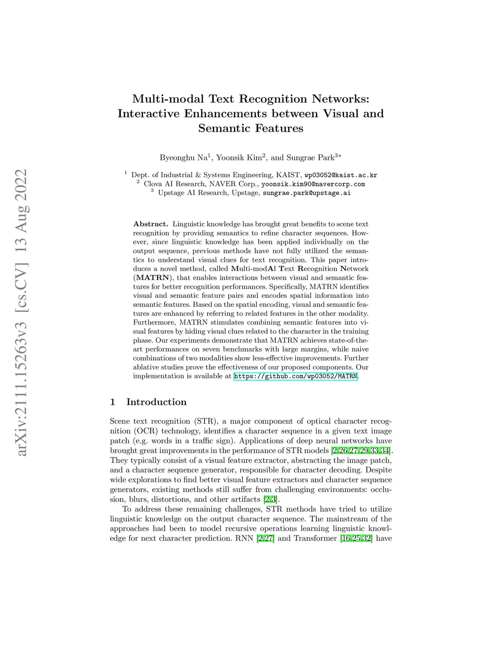 Multi-modal Text Recognition Networks: Interactive Enhancements between