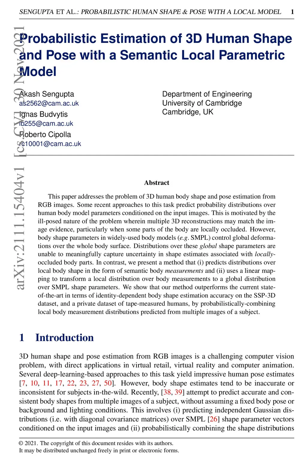 Probabilistic Estimation of 3D Human Shape and Pose with a Semantic