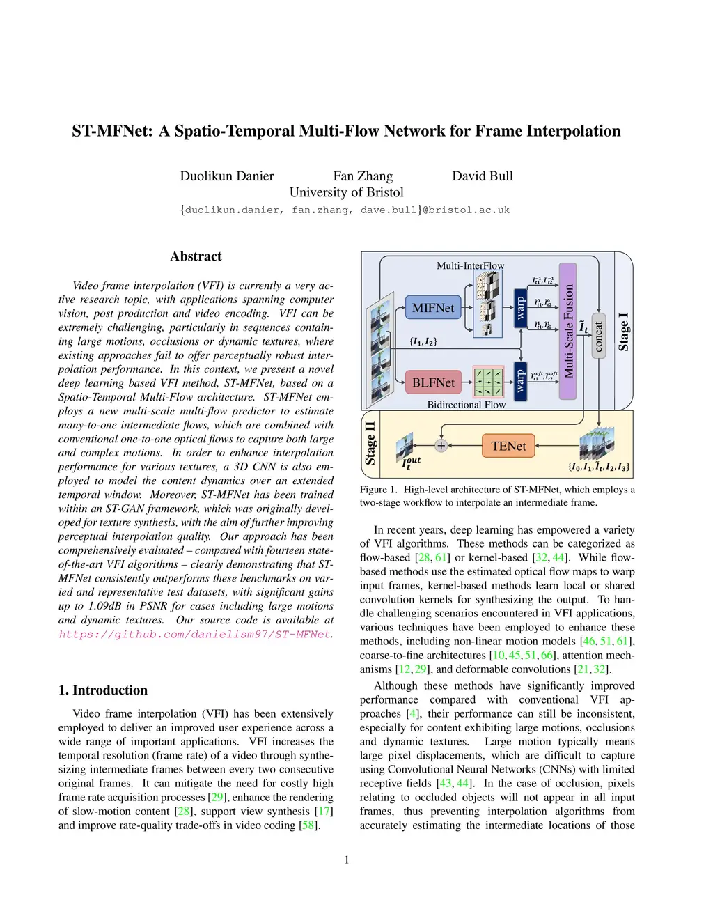 ST-MFNet: A Spatio-Temporal Multi-Flow Network for Frame Interpolation