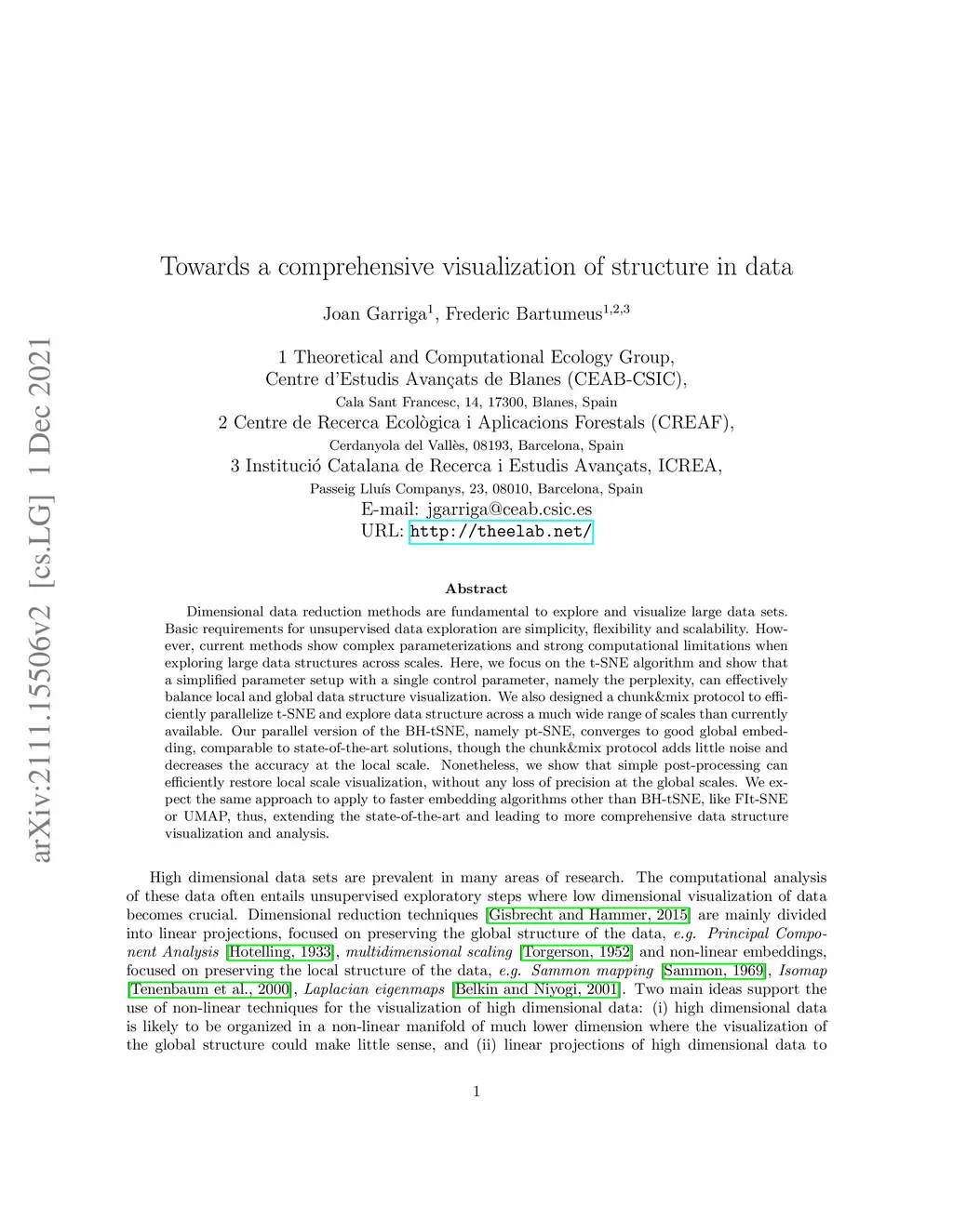 Dimensional data reduction methods are fundamental to explore and visualize large data sets. Basic requirements for unsupervised data exploration are simplicity, flexibility and scalability. However, current methods show complex parameterizations and strong computational limitations when exploring large data structures across scales. Here, we focus on the t-SNE algorithm and show that a simplified parameter setup with a single control parameter, namely the perplexity, can effectively balance local and global data structure visualization. We also designed a chunk\&mix protocol to efficiently parallelize t-SNE and explore data structure across a much wide range of scales than currently available. Our parallel version of the BH-tSNE, namely pt-SNE, converges to good global embedding, comparable to state-of-the-art solutions, though the chunk\&mix protocol adds little noise and decreases the accuracy at the local scale. Nonetheless, we show that simple post-processing can efficiently restore local scale visualization, without any loss of precision at the global scales. We expect the same approach to apply to faster embedding algorithms other than BH-tSNE, like FIt-SNE or UMAP, thus, extending the state-of-the-art and leading to more comprehensive data structure visualization and analysis.
