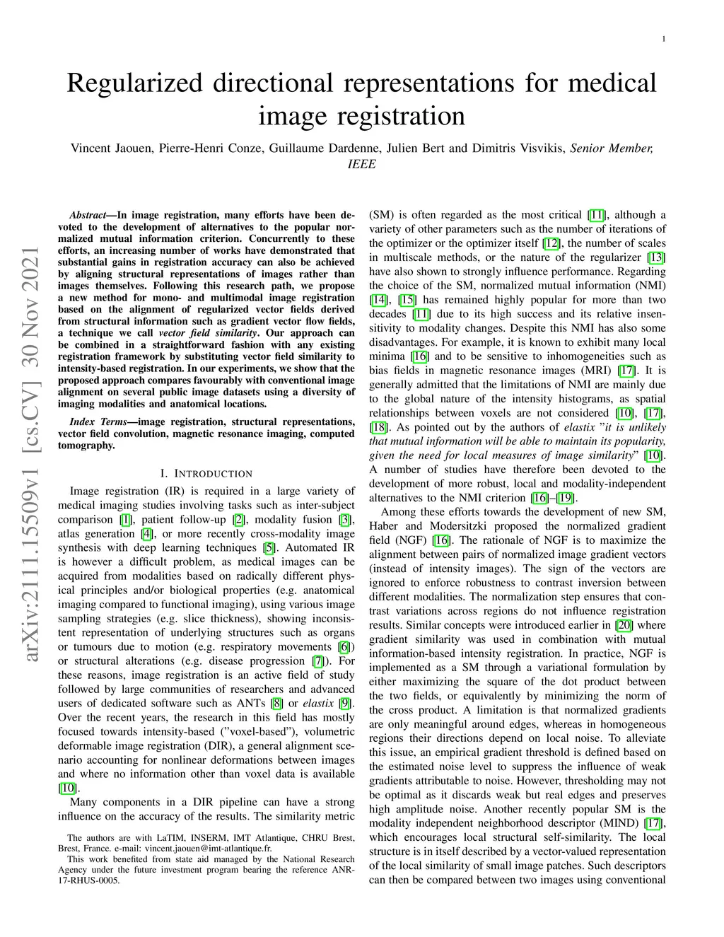 In image registration, many efforts have been devoted to the development of alternatives to the popular normalized mutual information criterion. Concurrently to these efforts, an increasing number of works have demonstrated that substantial gains in registration accuracy can also be achieved by aligning structural representations of images rather than images themselves. Following this research path, we propose a new method for mono- and multimodal image registration based on the alignment of regularized vector fields derived from structural information such as gradient vector flow fields, a technique we call \textit{vector field similarity}. Our approach can be combined in a straightforward fashion with any existing registration framework by substituting vector field similarity to intensity-based registration. In our experiments, we show that the proposed approach compares favourably with conventional image alignment on several public image datasets using a diversity of imaging modalities and anatomical locations.