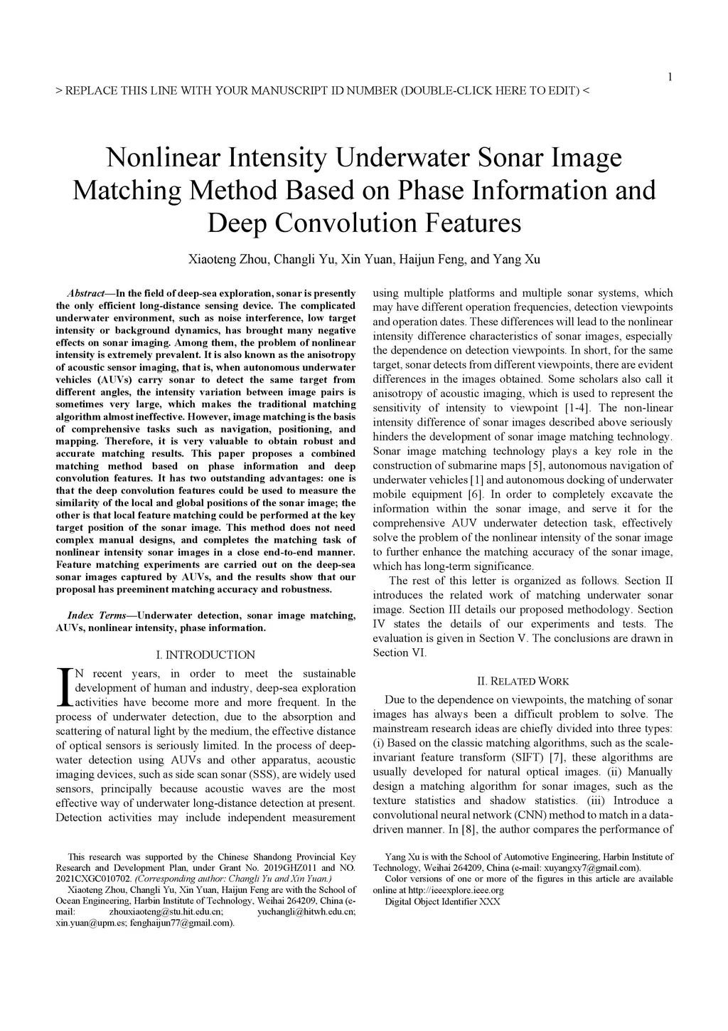 Nonlinear Intensity Underwater Sonar Image Matching Method Based on