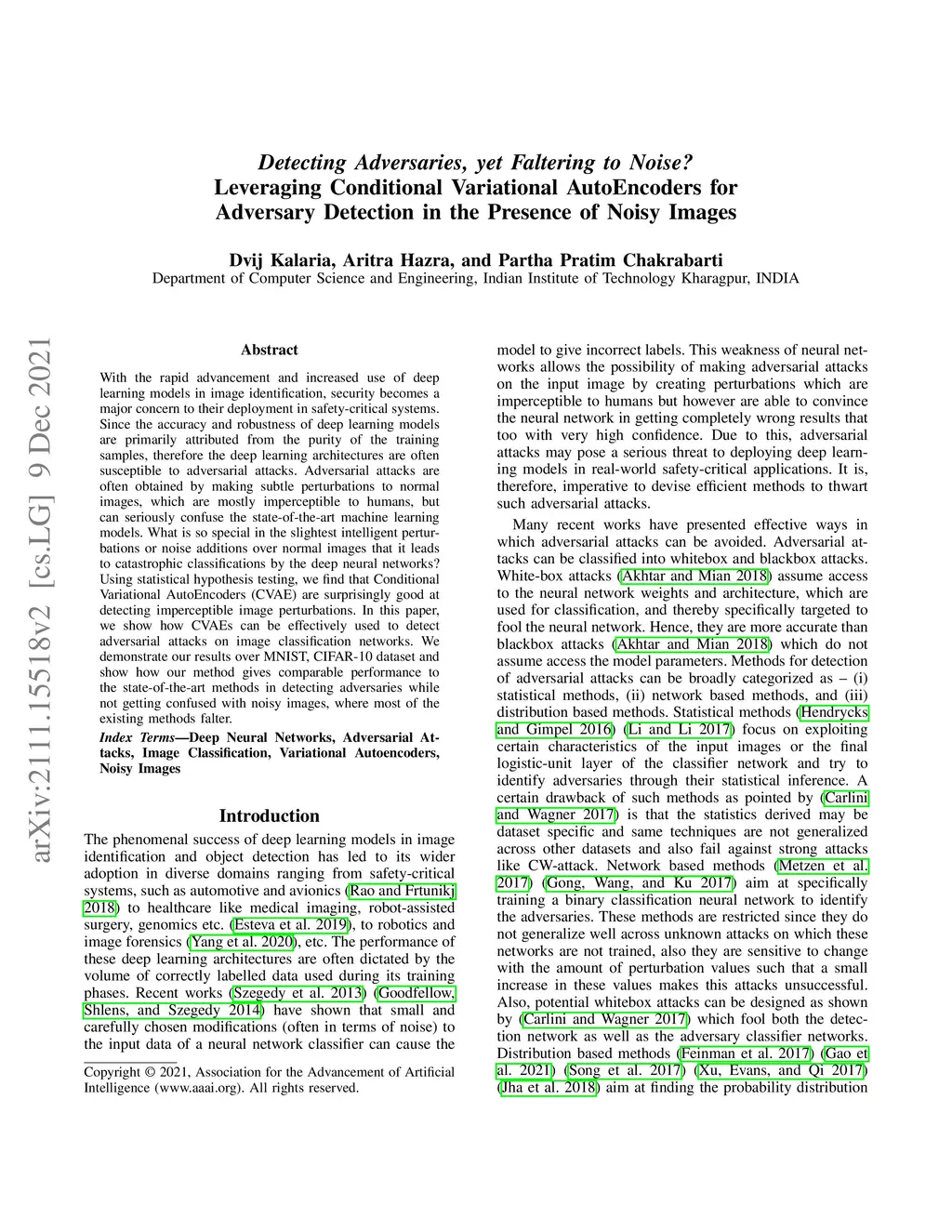 Variational AutoEncoders for Adversary Detection in the Presence of Noisy