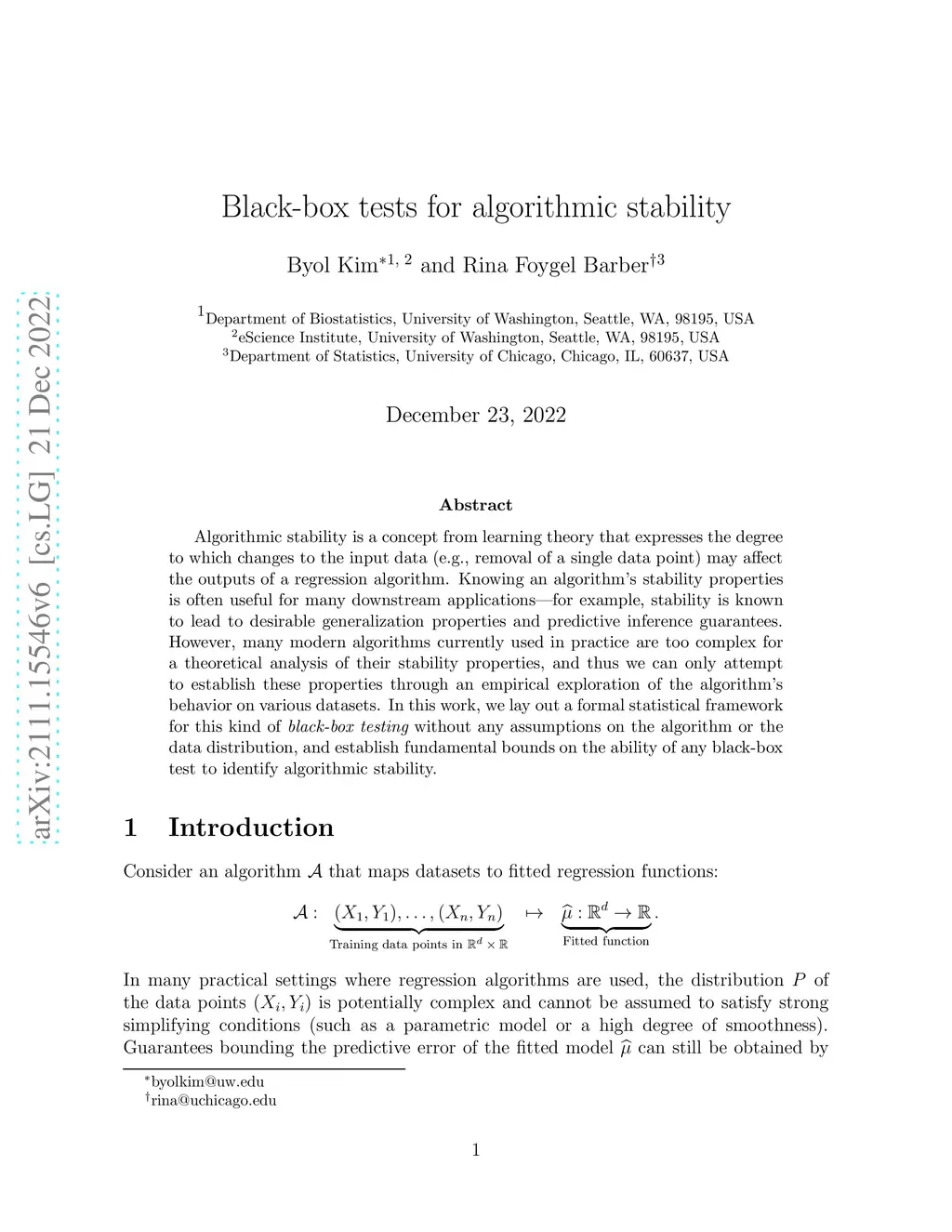 Black-box tests for algorithmic stability