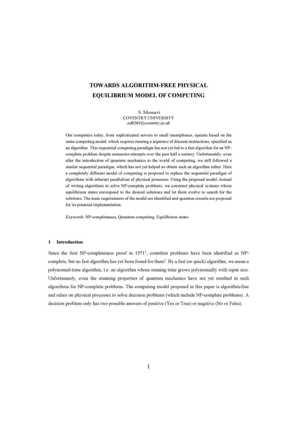 Our computers today, from sophisticated servers to small smartphones, operate based on the same computing model, which requires running a sequence of discrete instructions, specified as an algorithm. This sequential computing paradigm has not yet led to a fast algorithm for an NP-complete problem despite numerous attempts over the past half a century. Unfortunately, even after the introduction of quantum mechanics to the world of computing, we still followed a similar sequential paradigm, which has not yet helped us obtain such an algorithm either. Here a completely different model of computing is proposed to replace the sequential paradigm of algorithms with inherent parallelism of physical processes. Using the proposed model, instead of writing algorithms to solve NP-complete problems, we construct physical systems whose equilibrium states correspond to the desired solutions and let them evolve to search for the solutions. The main requirements of the model are identified and quantum circuits are proposed for its potential implementation.