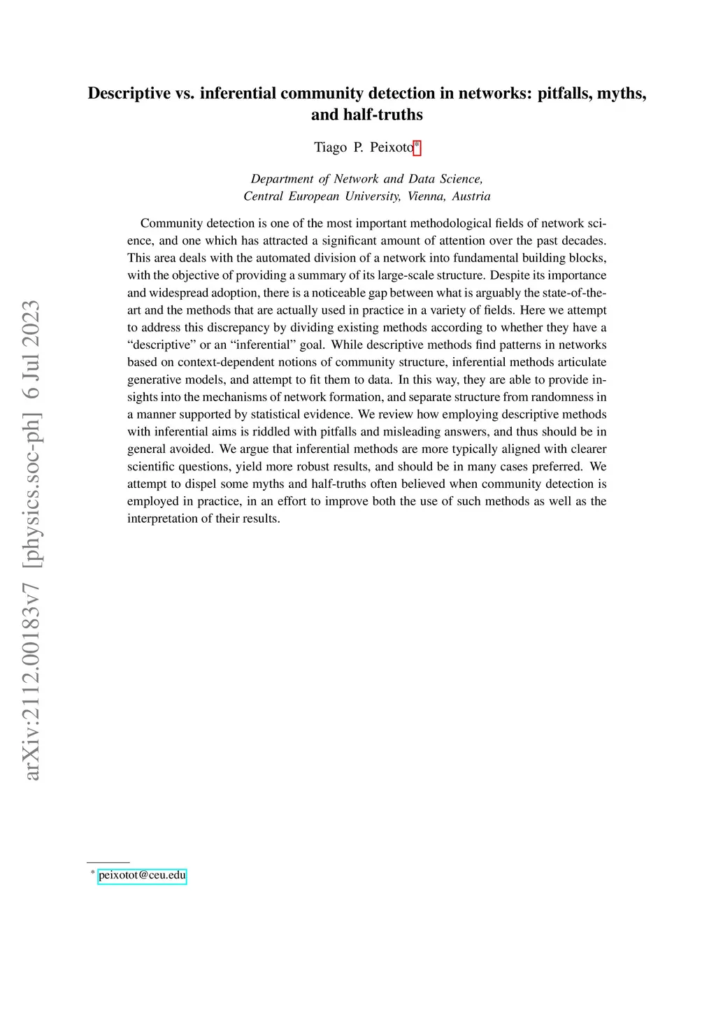 Community detection is one of the most important methodological fields of network science, and one which has attracted a significant amount of attention over the past decades. This area deals with the automated division of a network into fundamental building blocks, with the objective of providing a summary of its large-scale structure. Despite its importance and widespread adoption, there is a noticeable gap between what is arguably the state-of-the-art and the methods that are actually used in practice in a variety of fields. Here we attempt to address this discrepancy by dividing existing methods according to whether they have a "descriptive" or an "inferential" goal. While descriptive methods find patterns in networks based on context-dependent notions of community structure, inferential methods articulate generative models, and attempt to fit them to data. In this way, they are able to provide insights into the mechanisms of network formation, and separate structure from randomness in a manner supported by statistical evidence. We review how employing descriptive methods with inferential aims is riddled with pitfalls and misleading answers, and thus should be in general avoided. We argue that inferential methods are more typically aligned with clearer scientific questions, yield more robust results, and should be in many cases preferred. We attempt to dispel some myths and half-truths often believed when community detection is employed in practice, in an effort to improve both the use of such methods as well as the interpretation of their results.