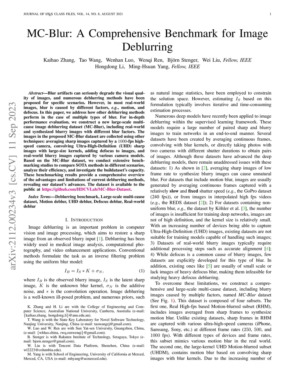 MC-Blur: A Comprehensive Benchmark for Image Deblurring