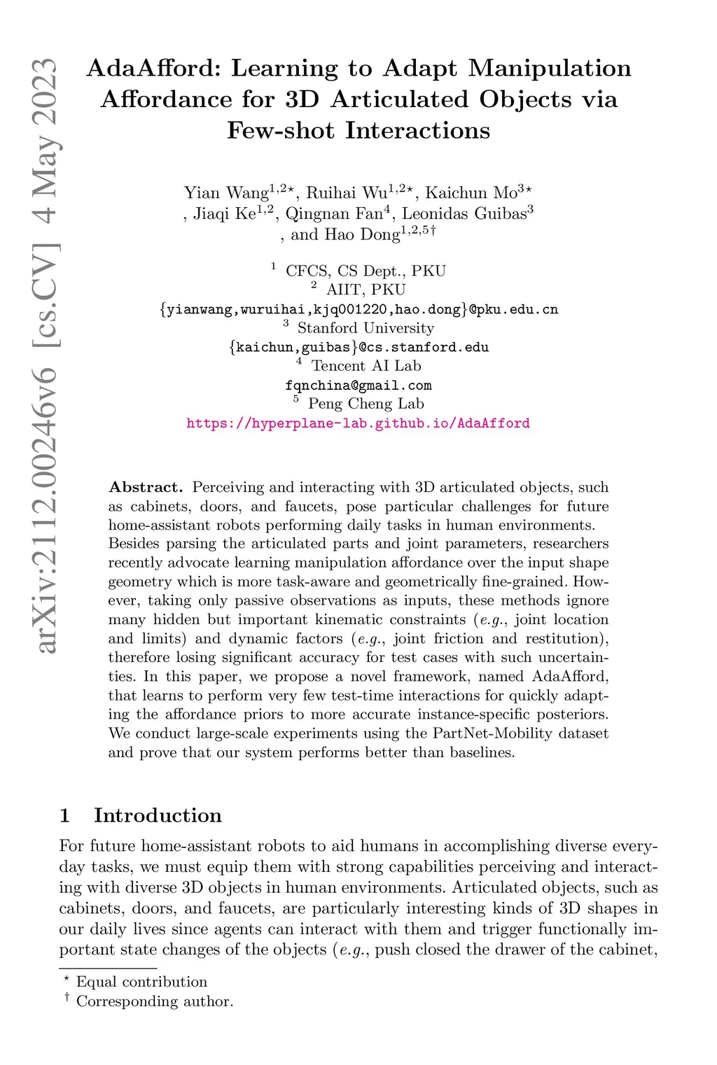 AdaAfford: Learning to Adapt Manipulation Affordance for 3D Articulated