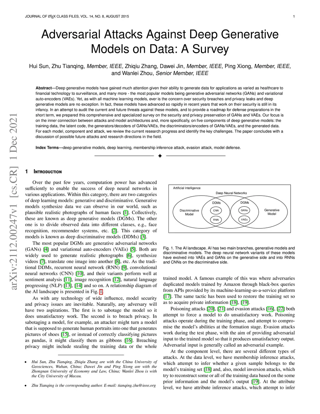 Adversarial Attacks Against Deep Generative Models on Data: A Survey