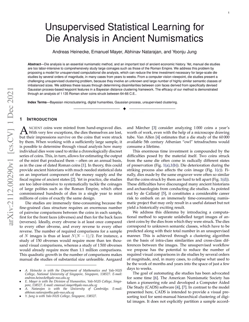 Unsupervised Statistical Learning for Die Analysis in Ancient