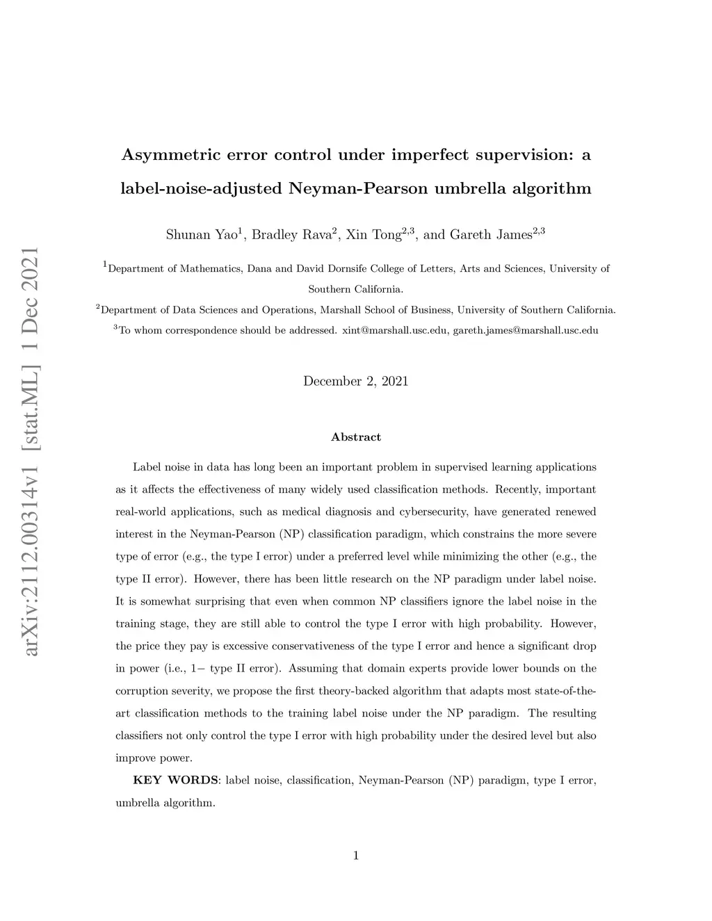 label-noise-adjusted Neyman-Pearson umbrella algorithm