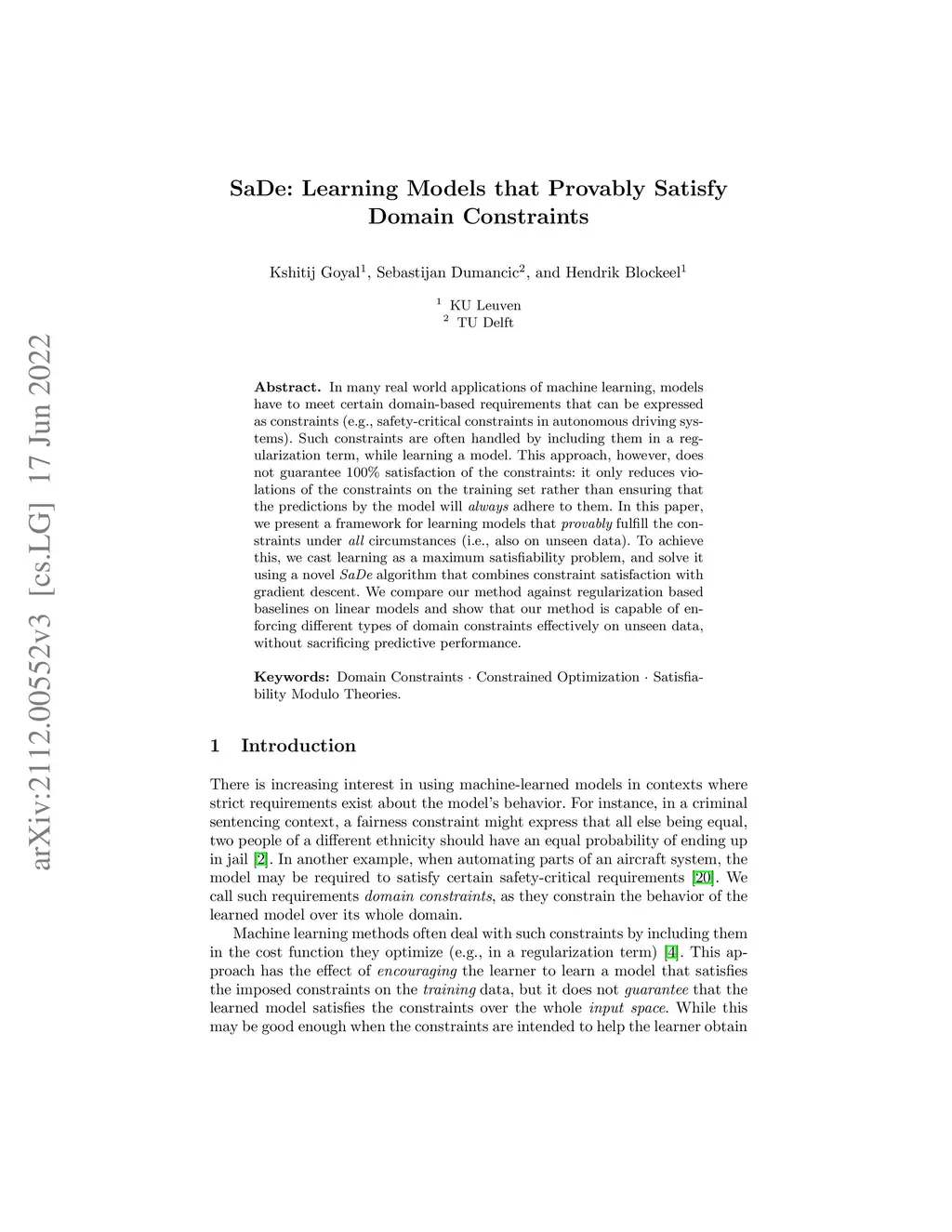 SaDe: Learning Models that Provably Satisfy Domain Constraints