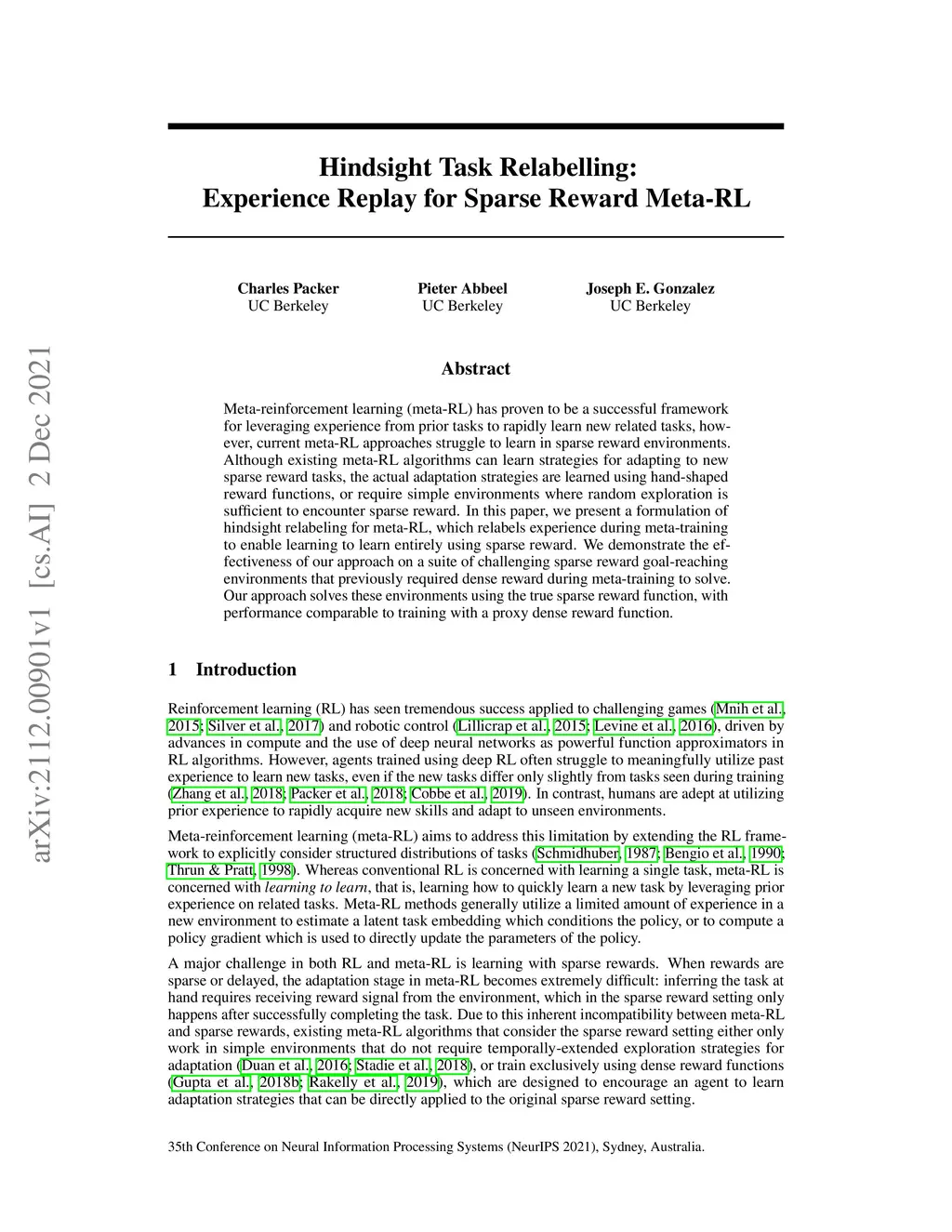 Hindsight Task Relabelling: Experience Replay for Sparse Reward Meta-RL