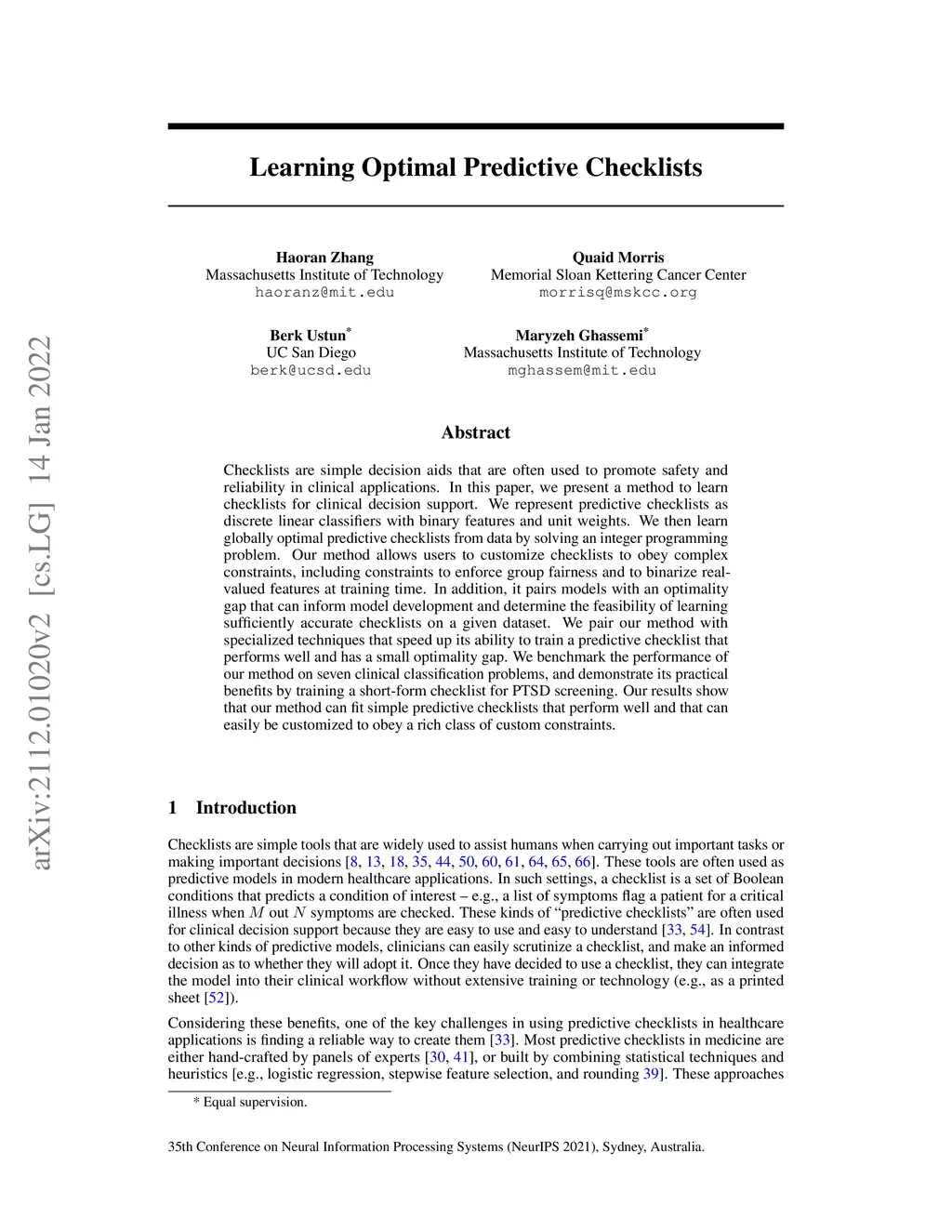 Learning Optimal Predictive Checklists