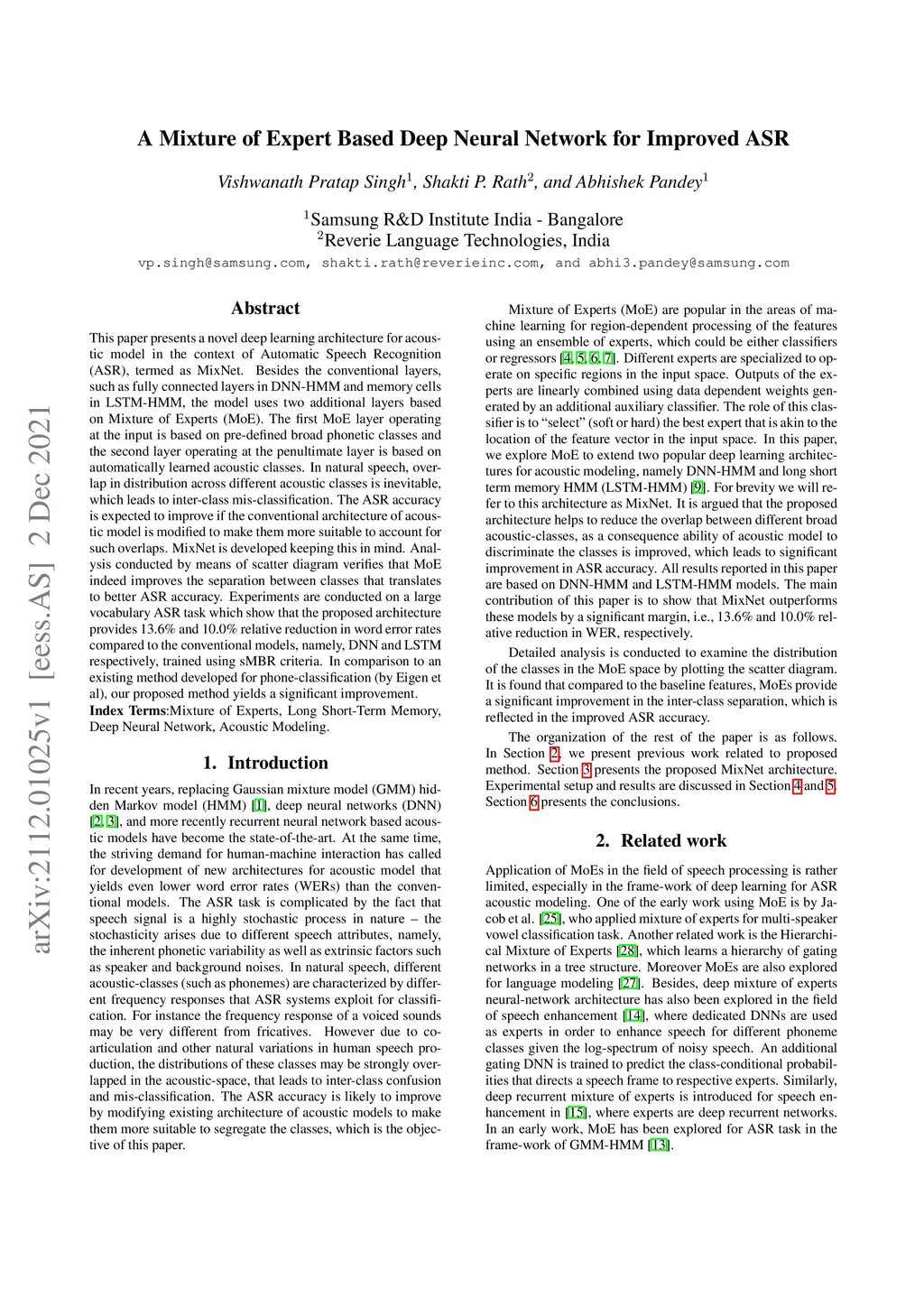 A Mixture of Expert Based Deep Neural Network for Improved ASR