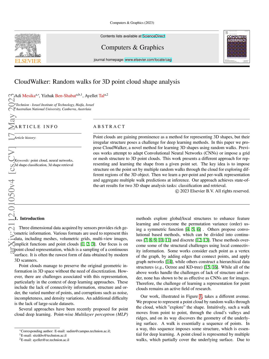 CloudWalker: Random walks for 3D point cloud shape analysis