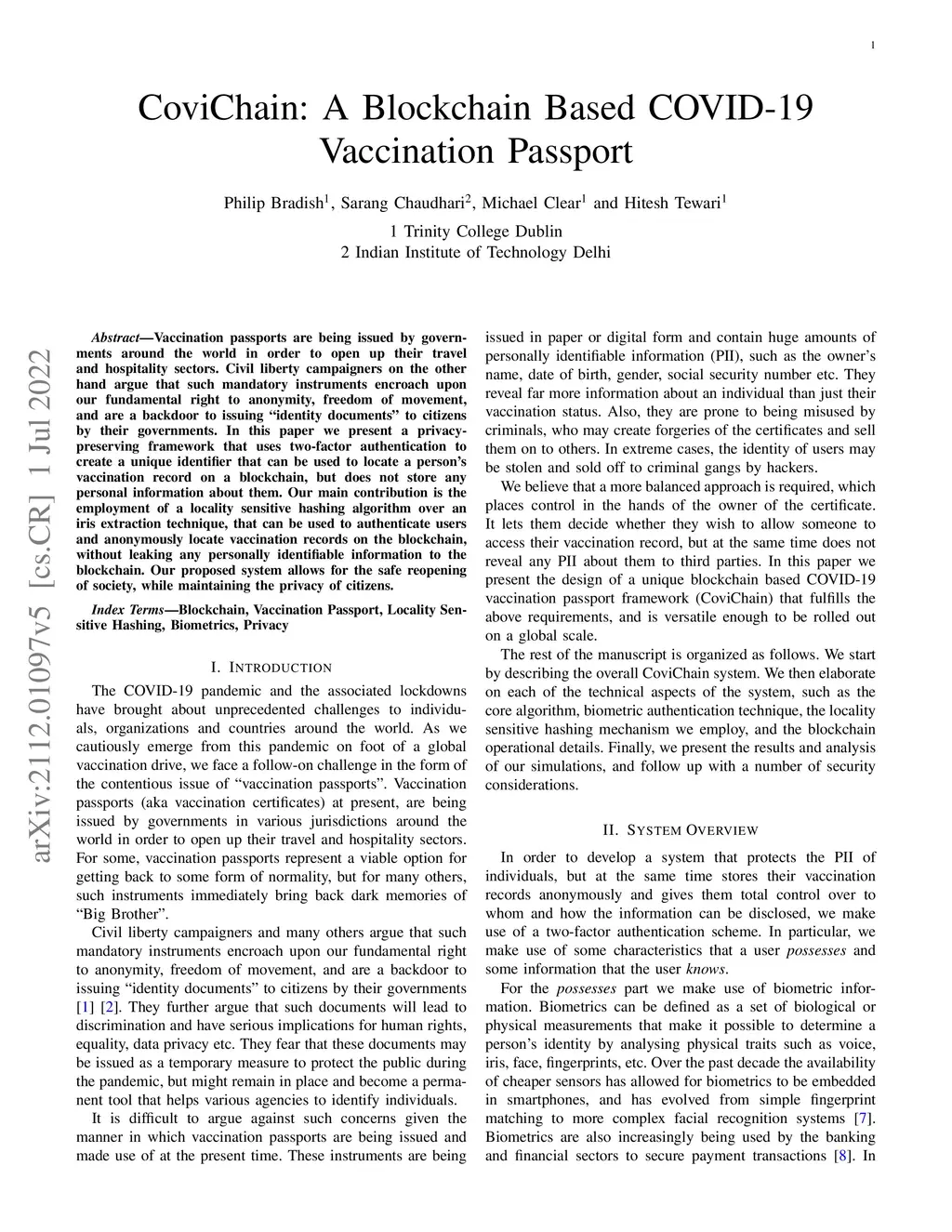 CoviChain: A Blockchain Based COVID-19 Vaccination Passport