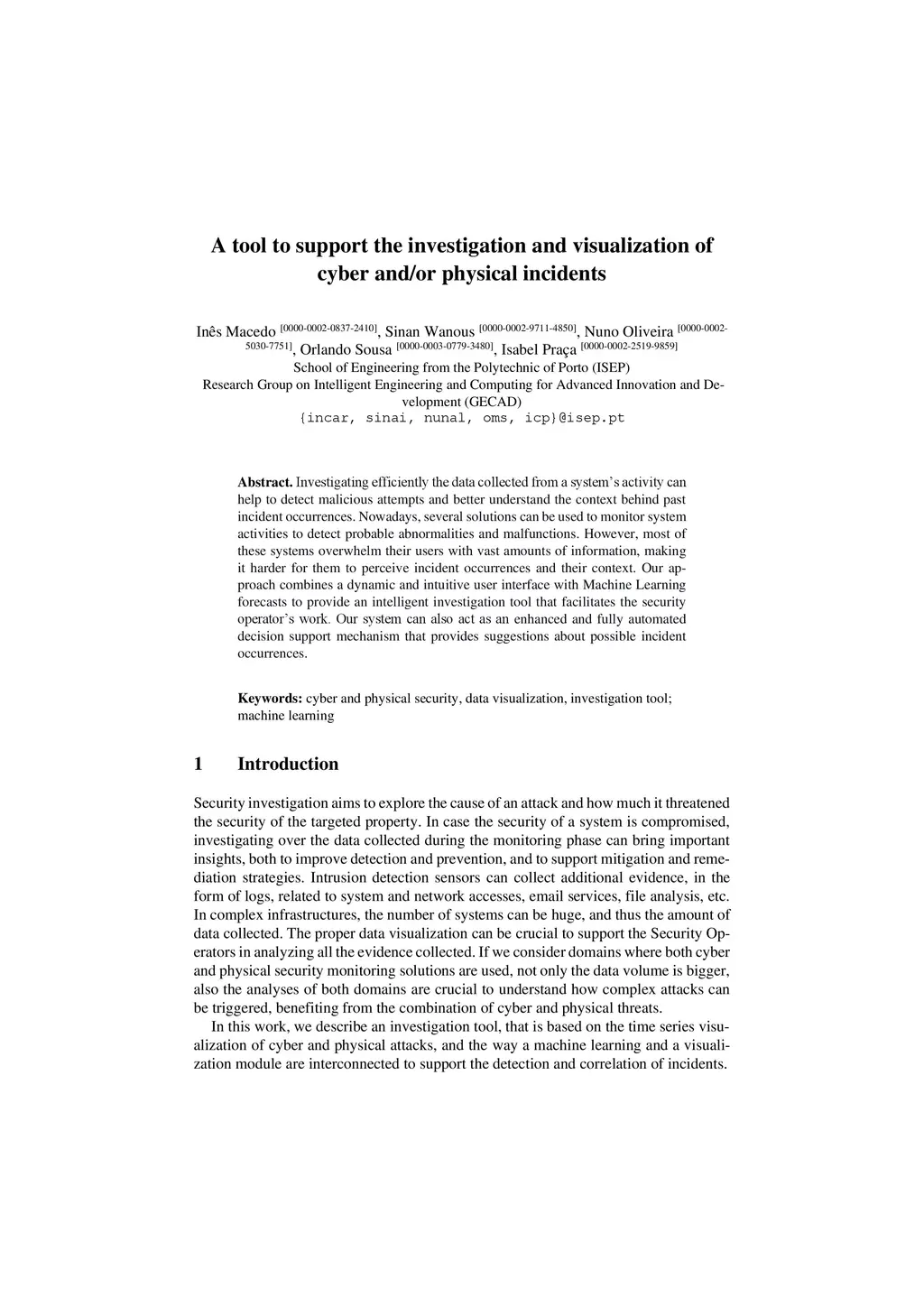 Investigating efficiently the data collected from a system's activity can help to detect malicious attempts and better understand the context behind past incident occurrences. Nowadays, several solutions can be used to monitor system activities to detect probable abnormalities and malfunctions. However, most of these systems overwhelm their users with vast amounts of information, making it harder for them to perceive incident occurrences and their context. Our approach combines a dynamic and intuitive user interface with Machine Learning forecasts to provide an intelligent investigation tool that facilitates the security operator's work. Our system can also act as an enhanced and fully automated decision support mechanism that provides suggestions about possible incident occurrences.