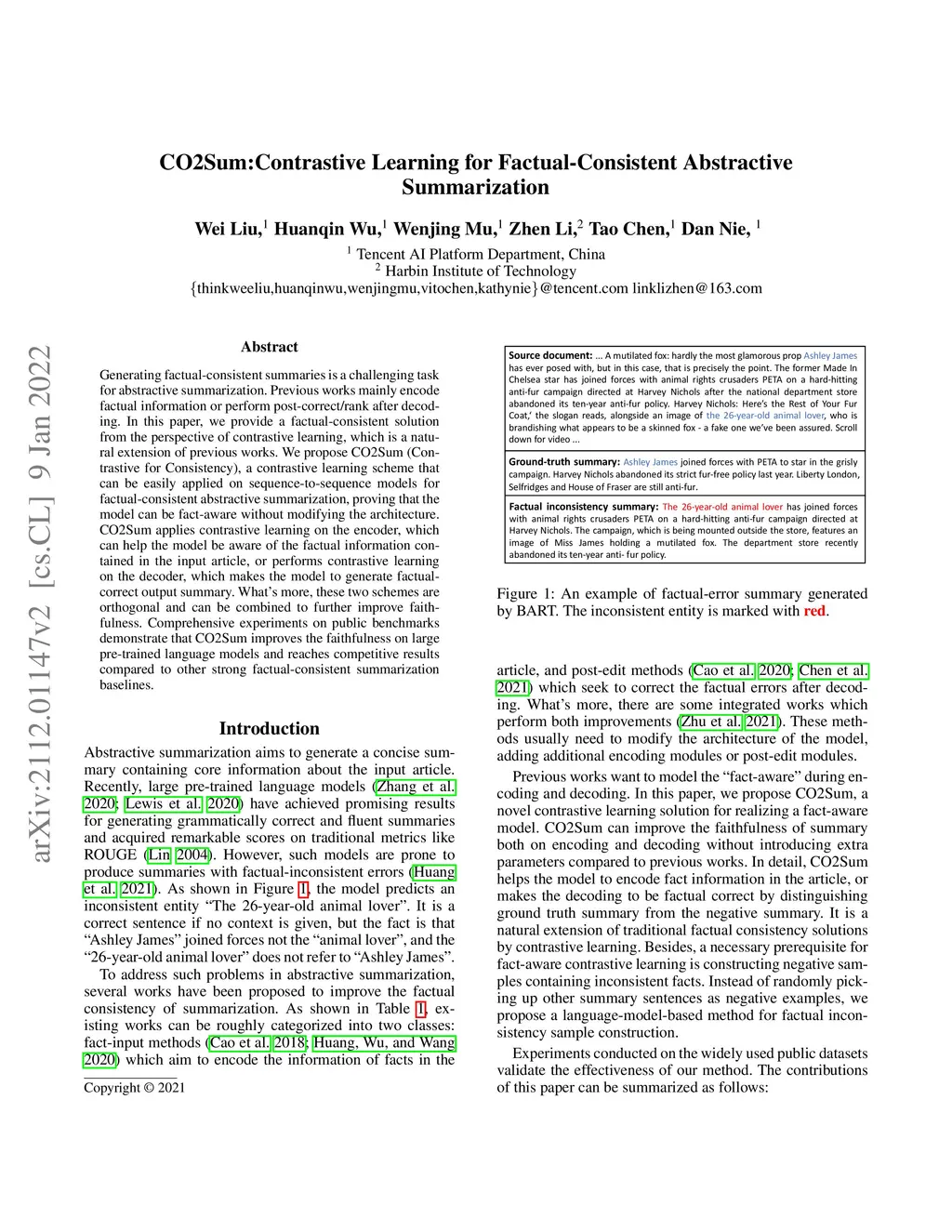 CO2Sum:Contrastive Learning for Factual-Consistent Abstractive