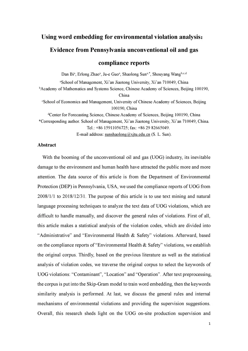 With the booming of the unconventional oil and gas industry, its inevitable damage to the environment and human health has attracted public attention. We applied text mining on a total 6057 the type of Environmental Health and Safety compliance reports from 2008 to 2018 lunched by the Department of Environmental Protection in Pennsylvania, USA, to discover the intern mechanism of environmental violations.