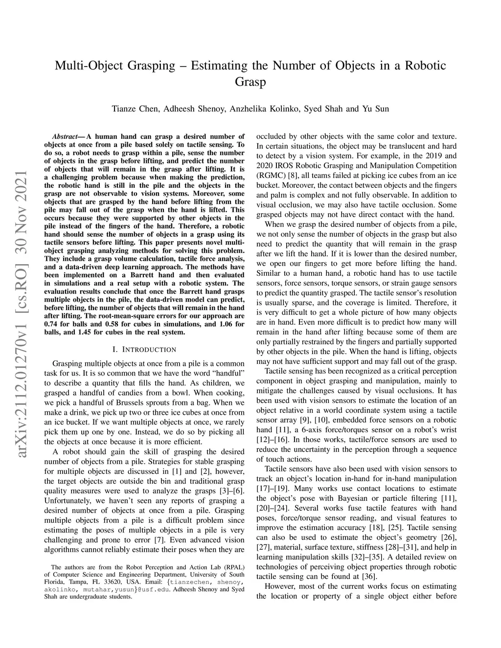 Multi-Object Grasping -- Estimating the Number of Objects in a Robotic